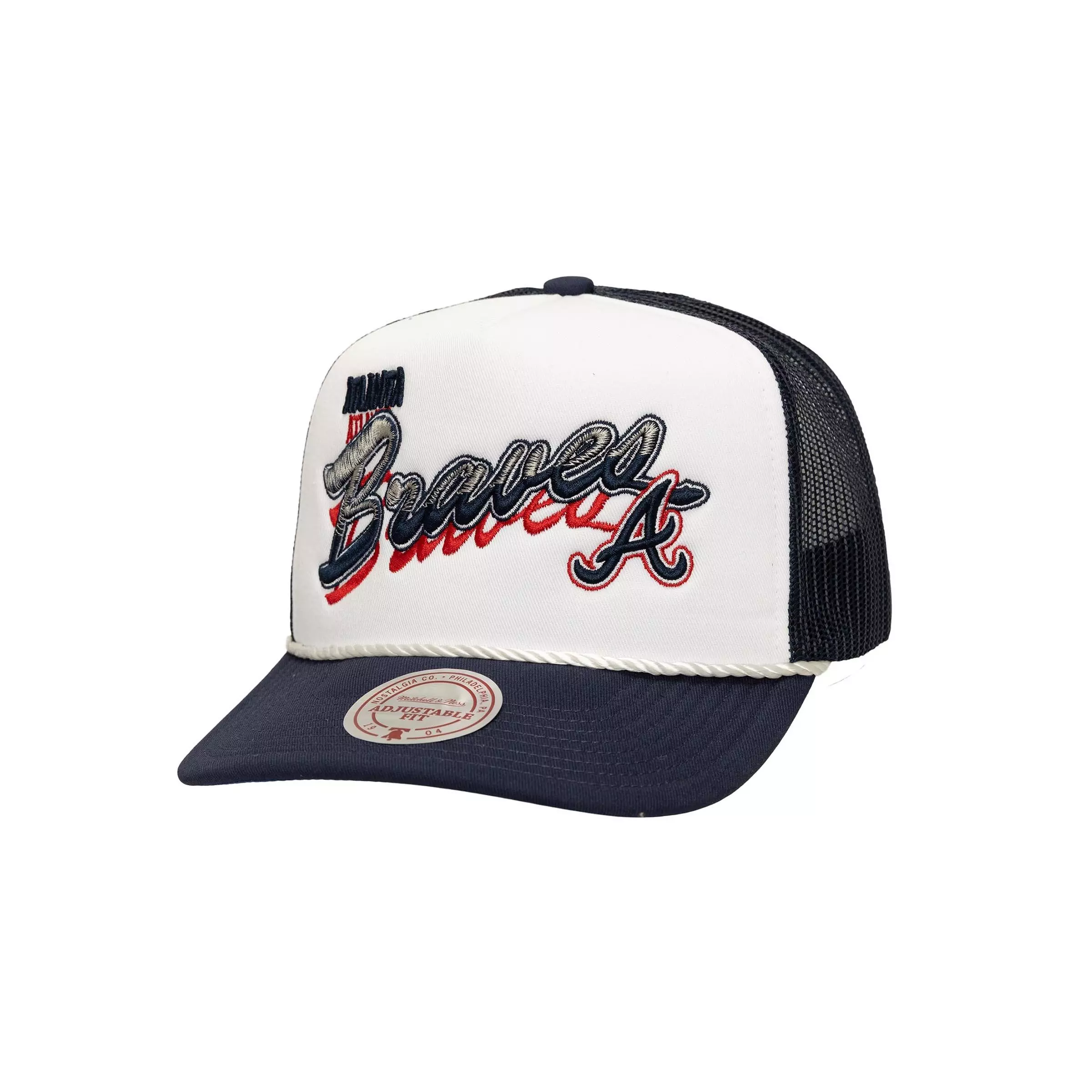 Celebrate your team in the Mitchell & Ness Atlanta Braves Shadow Drop Trucker Snapback Hat-White, a classic trucker silhouette with a bold, retro logo treatment. The structured high crown and pre-curved bill deliver a timeless profile that pairs easily with game-day outfits.Breathable mesh back panels help keep you cool, while the adjustable snapback closure provides a personalized fit. Finished with detailed embroidery for standout Braves pride, this cap brings vintage-inspired style you can wear from the first pitch to the final out.