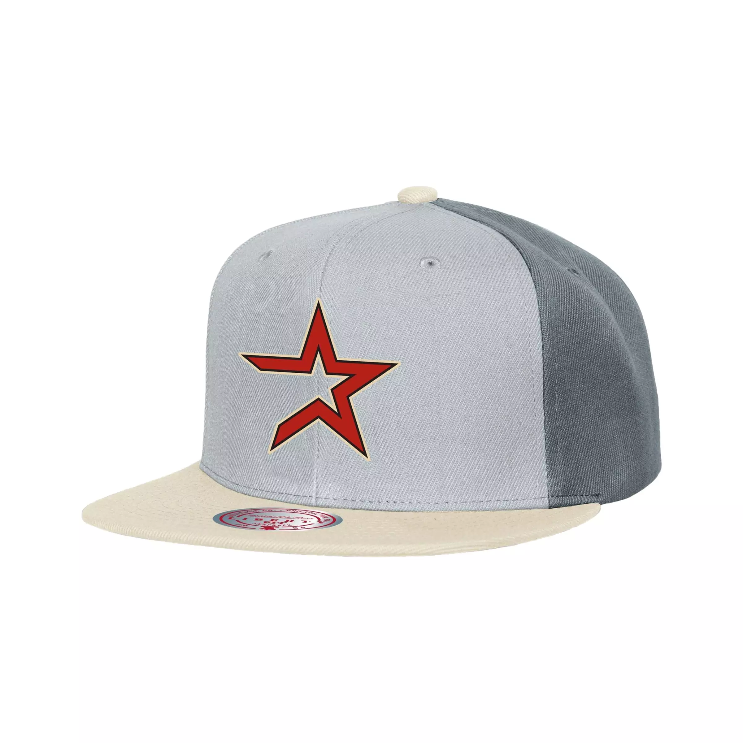 The Mitchell & Ness Houston Astros Triple Play Snapback Hat-Grey updates a classic headwear staple with vintage style, authentic throwback design, and detailed embroidery. This hat highlights Astros pride through precision stitching and a nod to retro aesthetics.