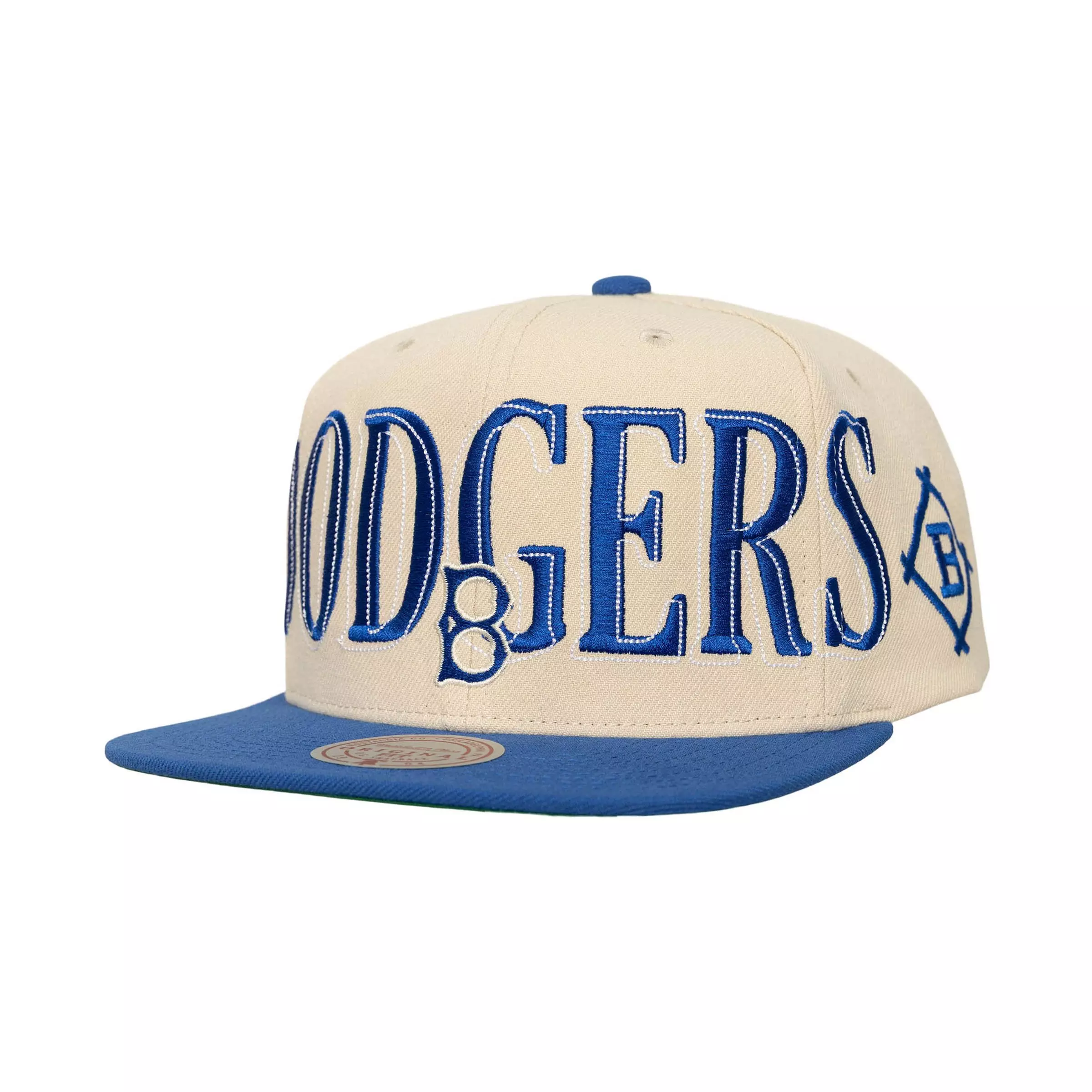 Mitchell & Ness Los Angeles Dodgers Across Board Snapback Hat - Cream
