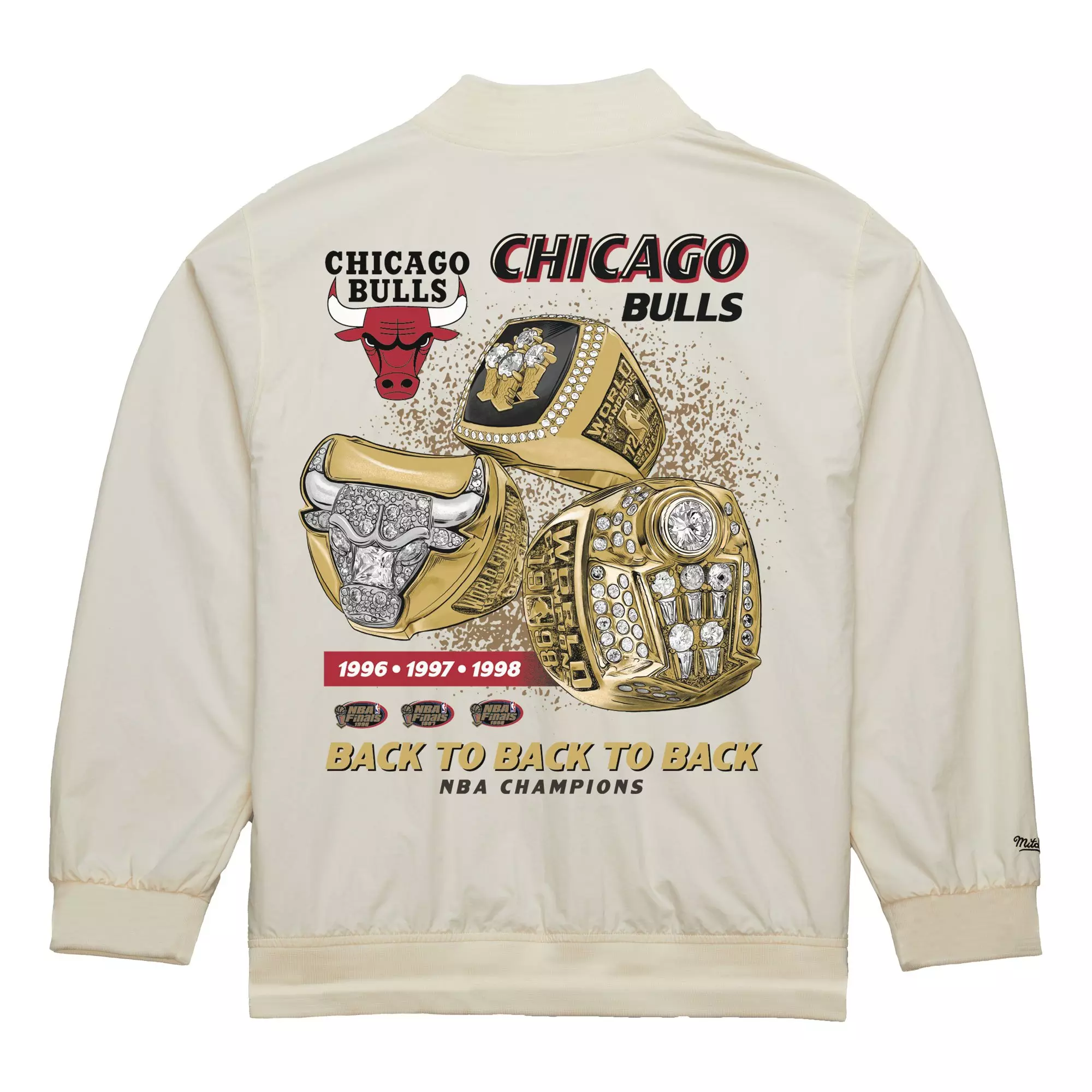 - Design: Vibrant embroidered team logos and championship patches celebrate the Bulls’ legacy.