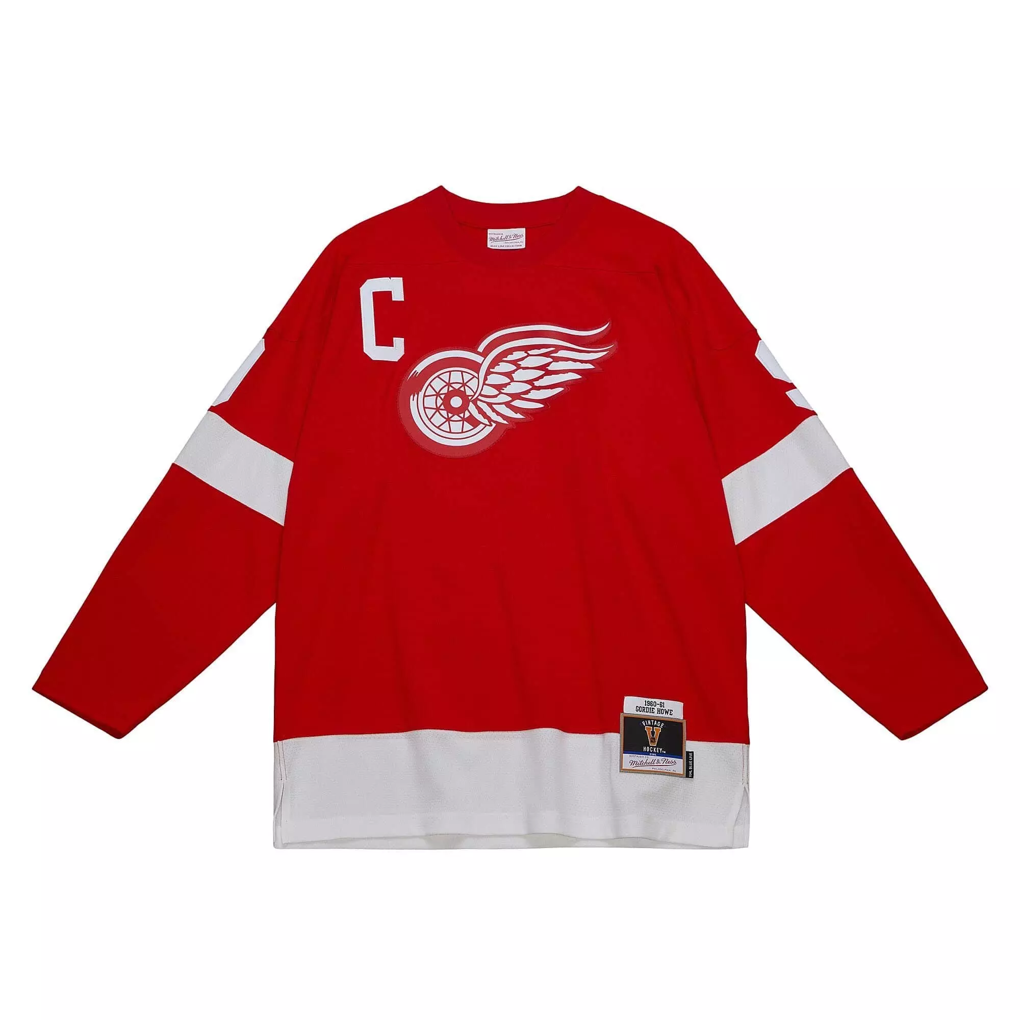 Mitchell & Ness Men's Gordie Howe Detroit Red Wings '61 Hockey JerseyThe ice has seen some legends strap up the skates, and you understand legends need to be known. Visit your nearest Hibbett City Gear, for this Mitchell & Ness Men's Gordie Howe Detroit Red Wings '61 Hockey Jersey! Become a legend to your peers when you pull up to the next NHL game with this nostalgic NHL jersey!