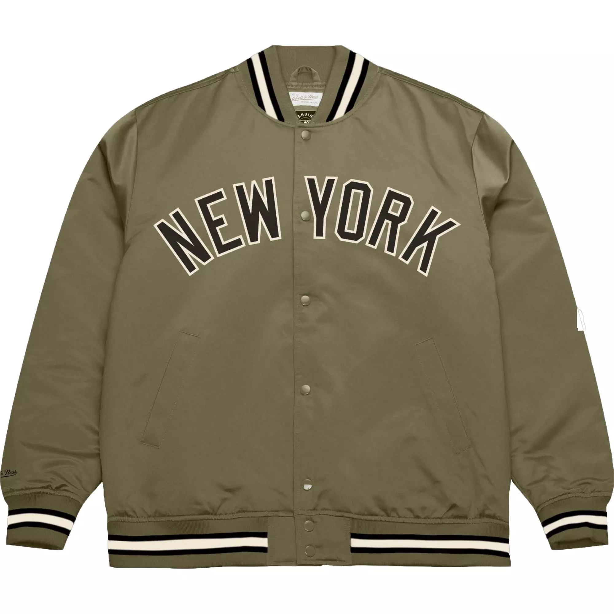 Mitchell & Ness Men's New York Yankees Lightweight Satin Jacket-Olive/Black