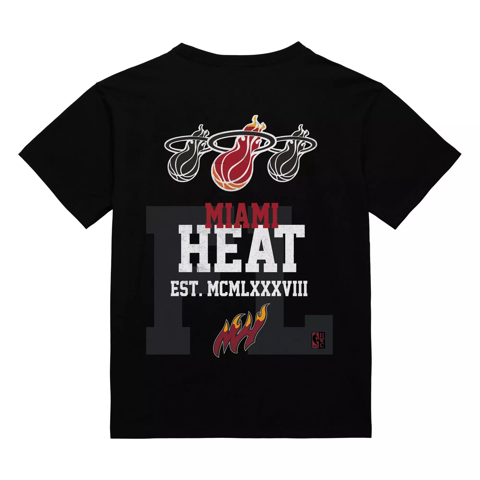 Represent your Miami Heat with this bold and stylish Mitchell & Ness Miami Heat Home Team Tee-Black. Made from soft cotton, this t-shirt offers both comfort and flair, making it a must-have for any Heat fan. Whether you're at the game or out with friends, this tee lets you wear your team spirit with pride. Grab yours today!