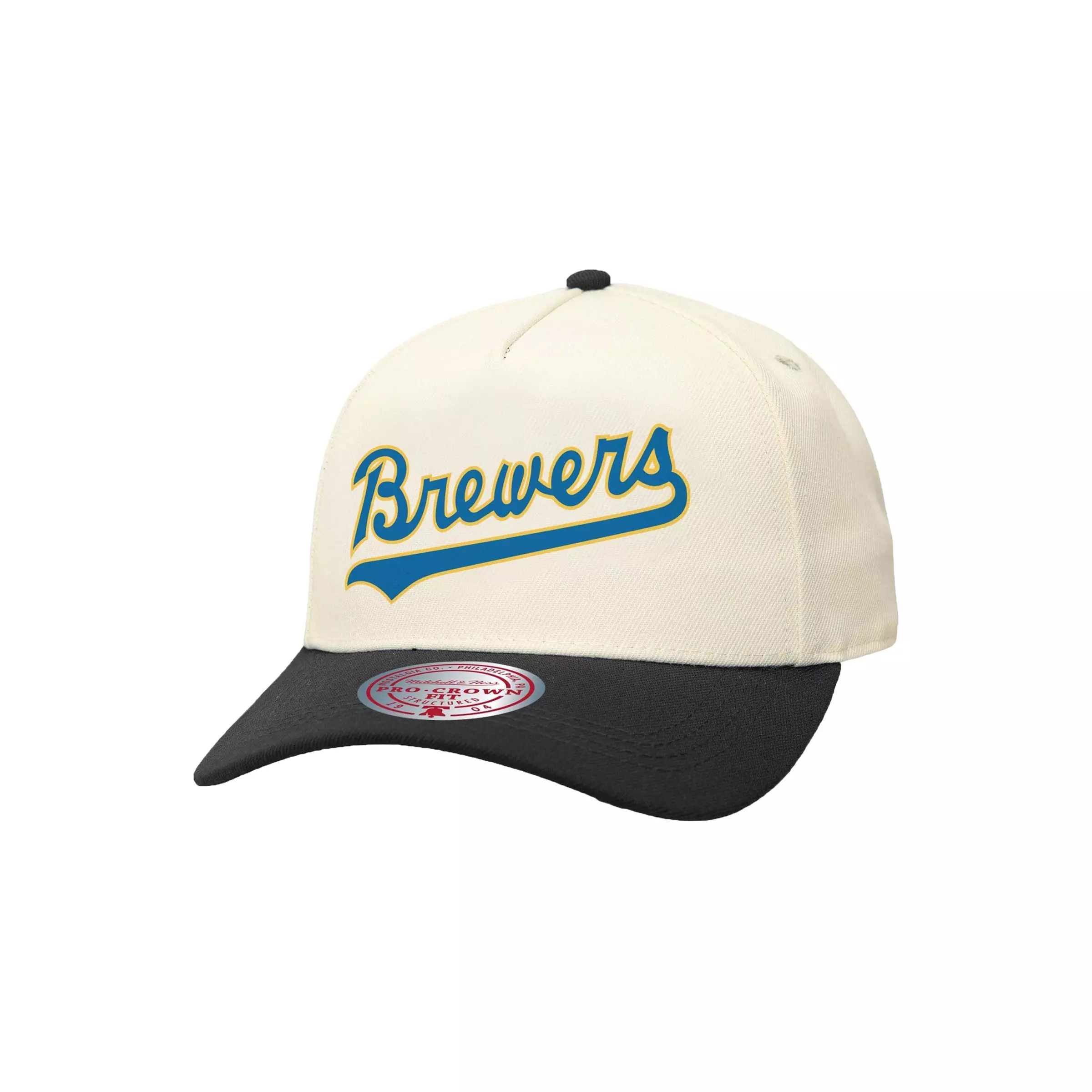 Mitchell & Ness Milwaukee Brewers Off Word Snapback Hat-Off-White