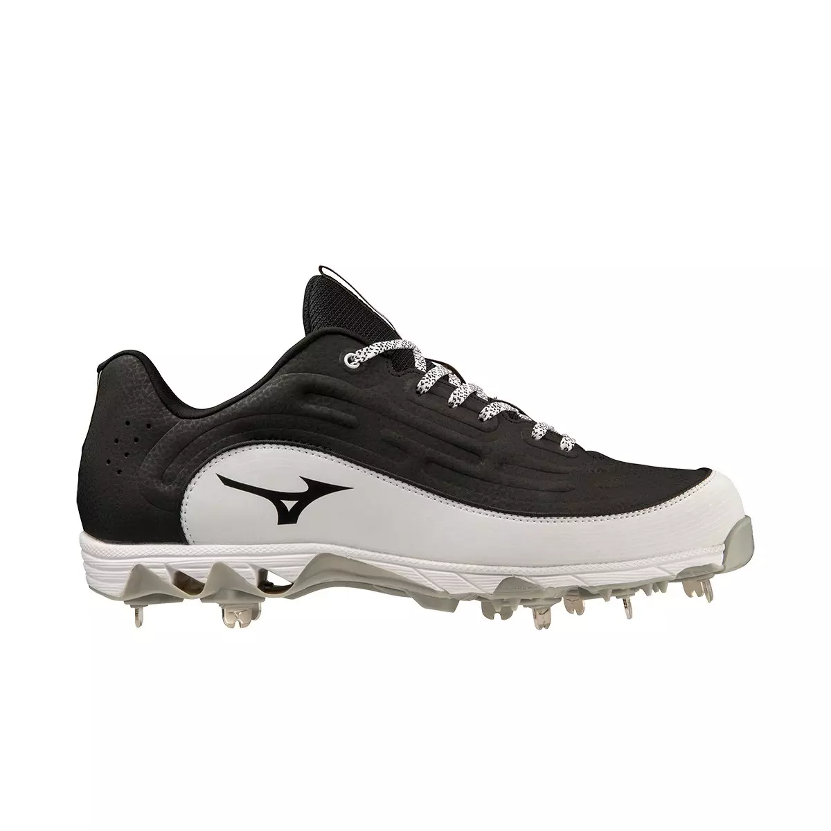 The new Mizuno 9-Spike Ambition 3 "Black/White" Men's Baseball Cleat Low Metal features Mizuno's iconic 9-Spike® technology for optimum traction. The outsole includes 3 zones to enhance Power, Propulsion, and Performance. Full length EVA midsole provides premium heel to toe cushioning. Mizuno Ambition 3 also features Mizuno Wave® technology to relieve the shock sent to your ankles and pressure while planting your foot, which, in turn, enables you to maintain a highly stable base. The new 2 layered insole provides maximum step in comfort.Features