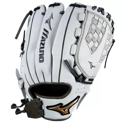The Mizuno Prime Elite 12" Pitcher/Outfield Softball Glove LHT pairs soft, smooth white and grey leather with a premium, game-ready feel. An UltraSoft Pro Palm Liner adds a plush touch, while perforated thumb and pinky panels reduce weight and boost breathability for lighter, quicker movements.