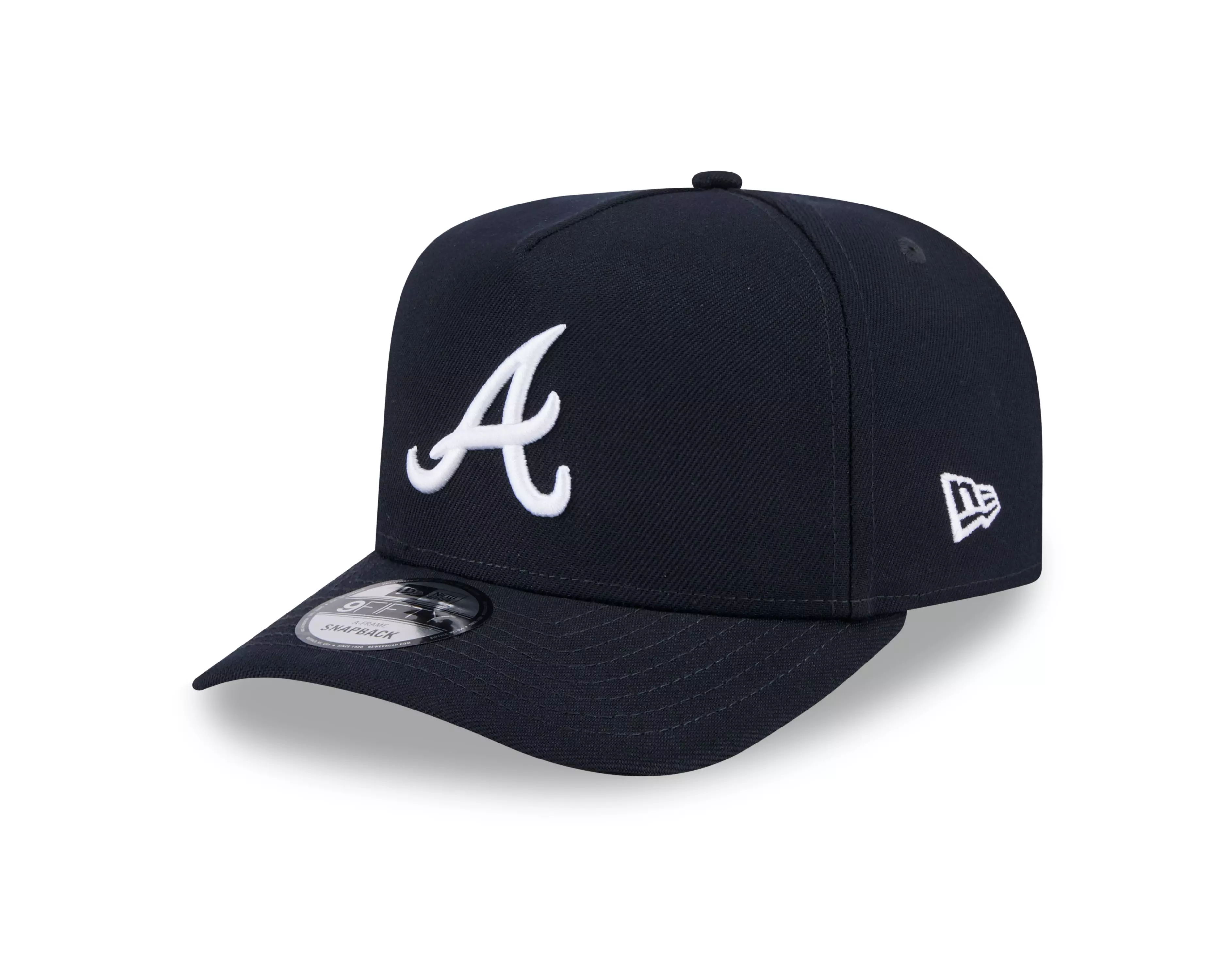 Step up your hat game with this New Era Atlanta Braves 9FIFTY A-Frame Snapback Hat-Navy. The embroidered Braves logo on the front panel and colorway add a timeless look that exudes style and ATL pride. This structured snapback combines fashion-forward flair with the quality you expect from New Era, making it the perfect accessory for any look. Grab yours today!Features