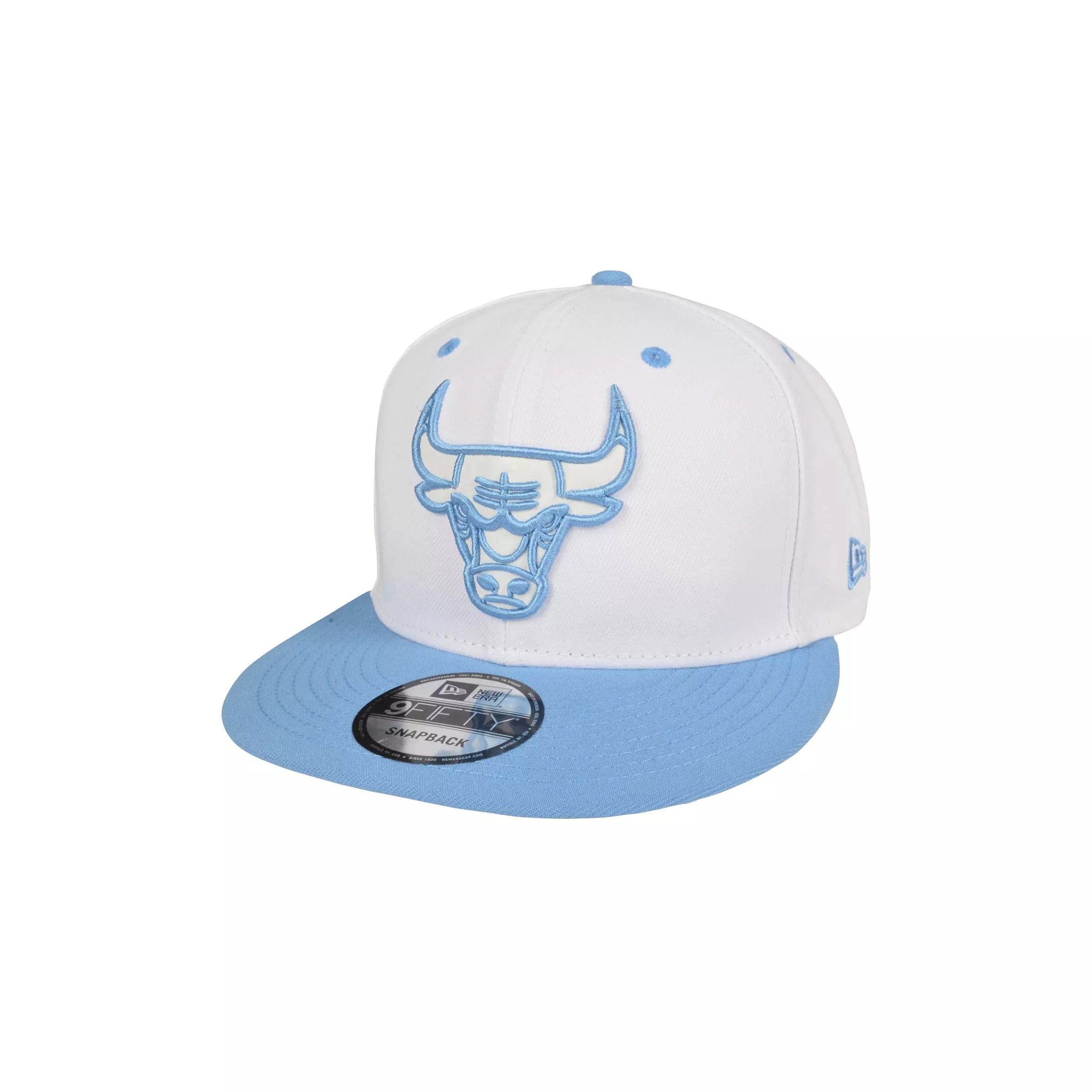 Show your team pride with the New Era Chicago Bulls 9FIFTY Snapback-White/Blue. The adjustable snapback features white and blue panels and a raised Bulls logo embroidered on the front.