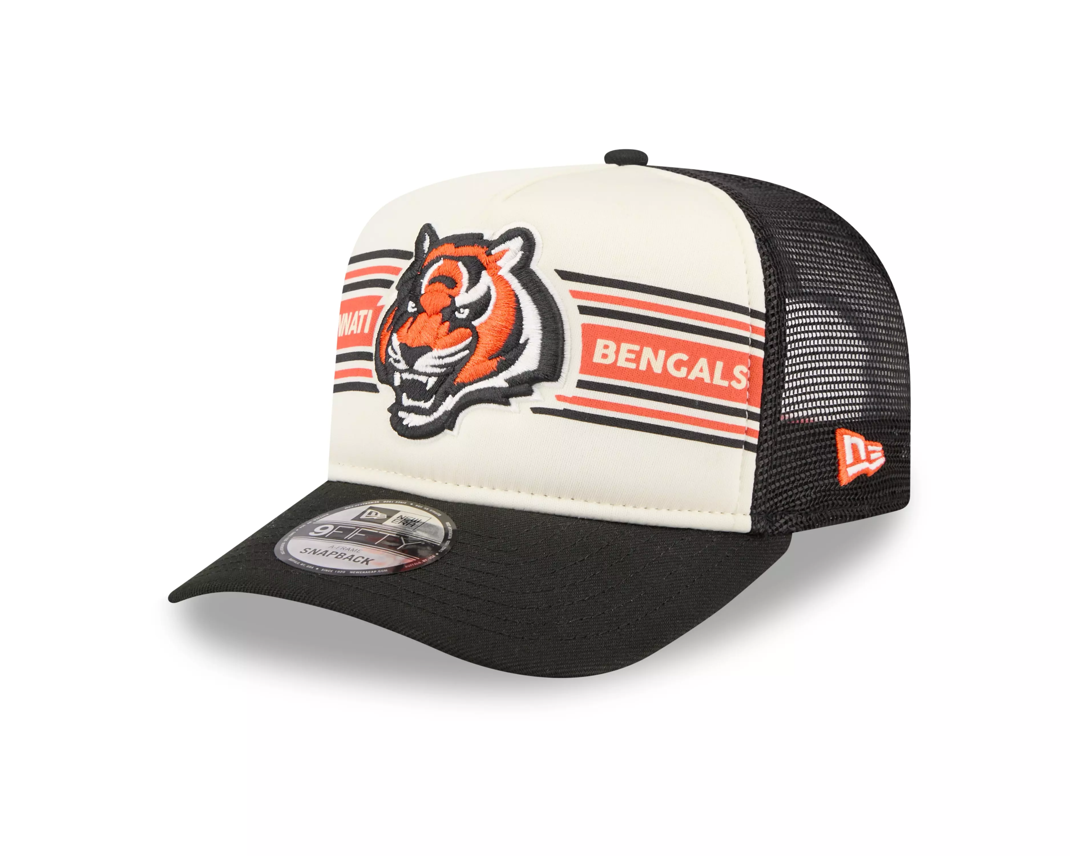 Step up your hat game with this New Era Cincinnati Bengals 9FIFTY Banner Snapback Hat-Orange, designed to stand out from the crowd. The embroidered Banner logo on the front panel and colorway add a unique twist that exudes style and Bengals pride. This structured Snapback combines fashion-forward flair with the quality you expect from New Era, making it the perfect accessory for any casual, streetwear or gameday look. With its adjustable Snapback closure, you'll enjoy a customized, comfortable fit. Grab yours today!Features