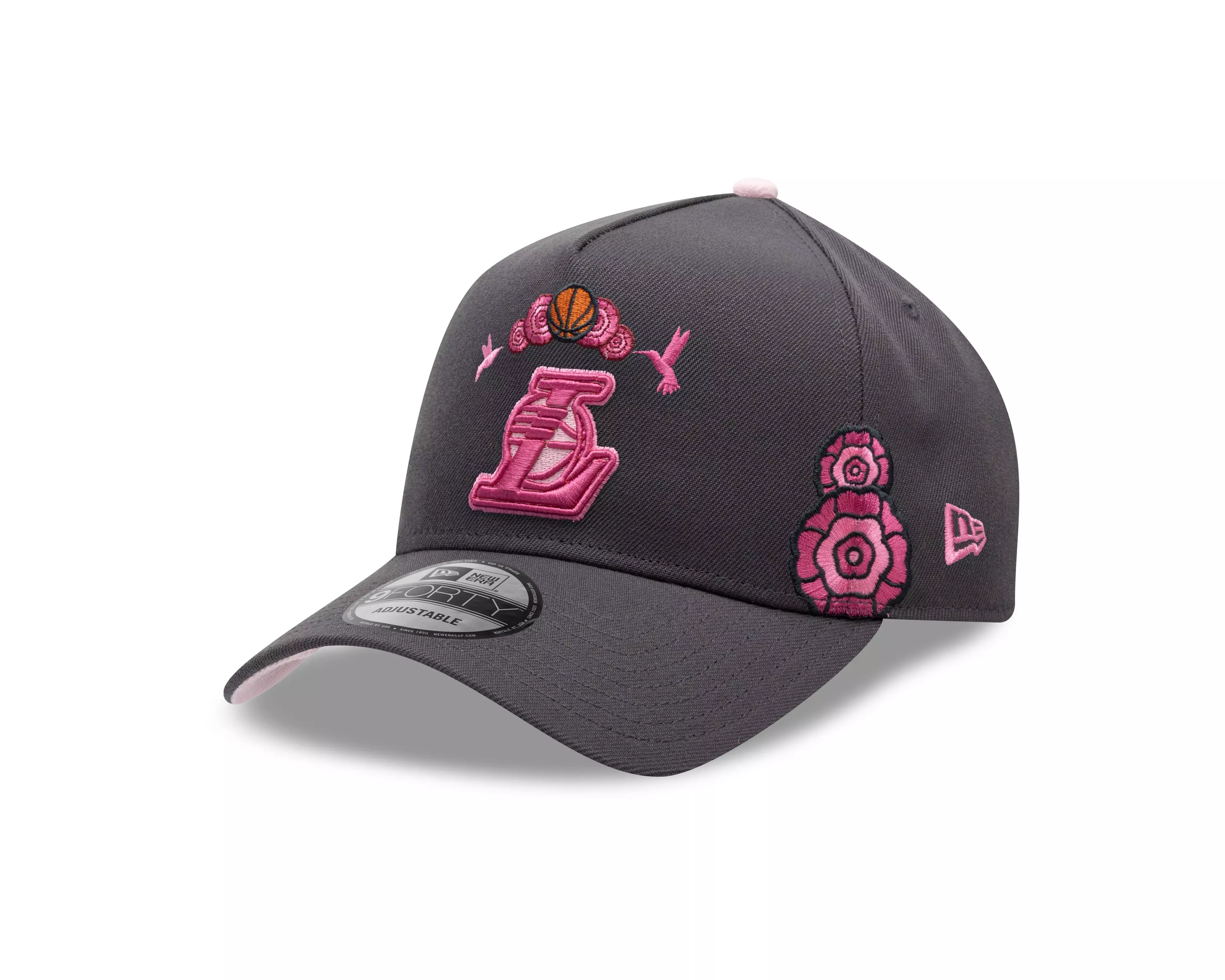 Celebrate team pride with the New Era Los Angeles Lakers 9FORTY Dia De Los Muertos Snapback Hat-Grey, showcasing a bold front Lakers patch and themed detailing. The structured A-Frame crown and pre-curved visor deliver a clean, athletic profile that pairs well with game day or everyday wear.