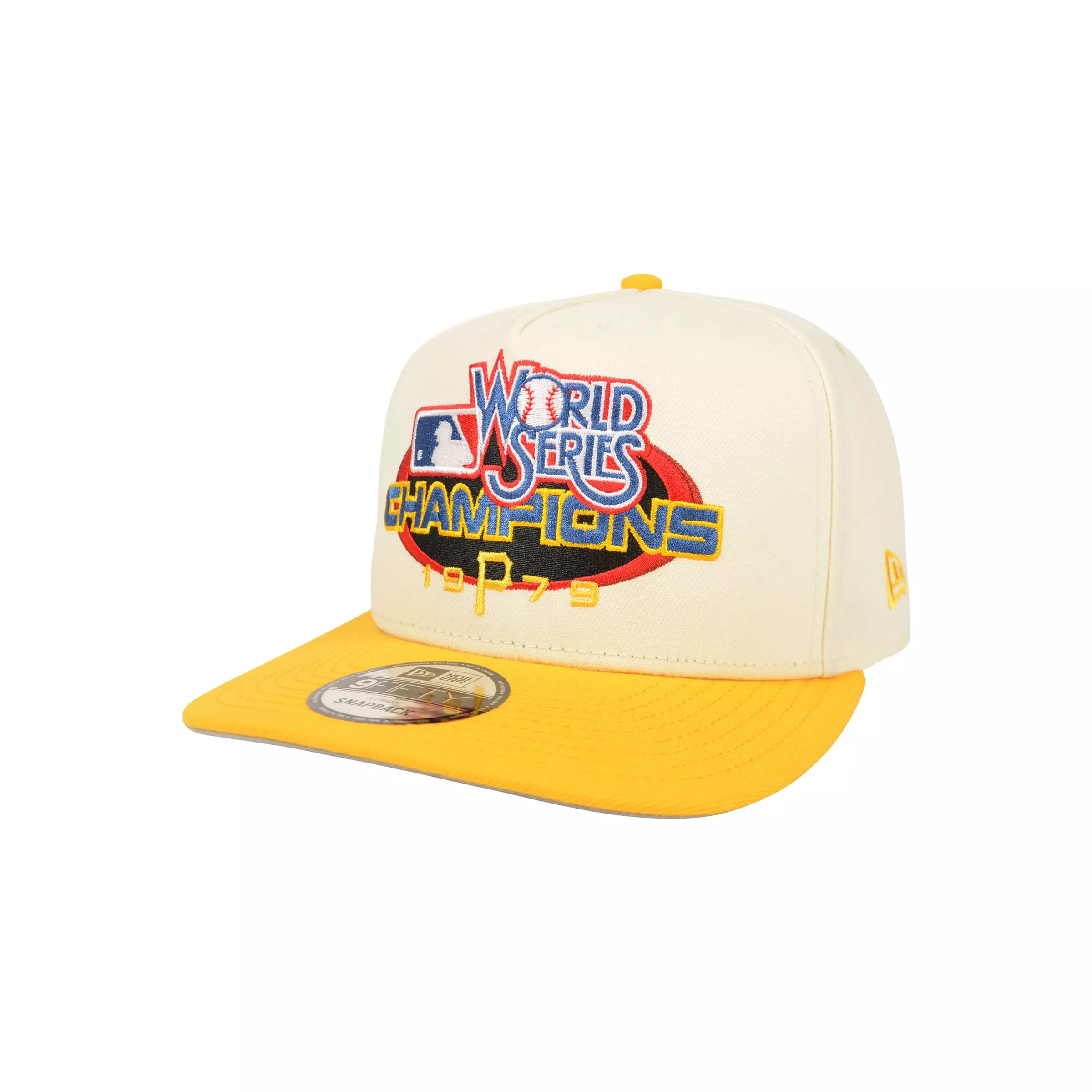 Step up your hat game with this New Era Pittsburgh Pirates 9FIFTY A-Frame 1979 World Series Snapback Hat-Gold. The embroidered Pirates logo on the front panel, 1979 World Series patch, and Gold colorway add a unique twist that exudes style and Pirates pride. Grab yours today!Features