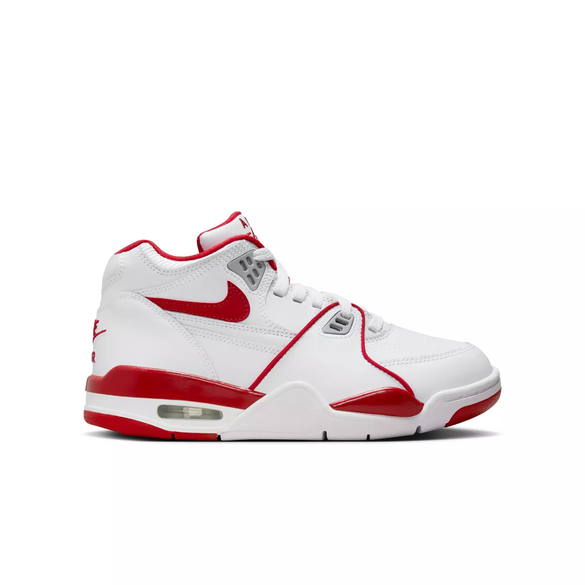 From the playground to city streets, the Nike Air Flight 89 "White/Varsity Red/Wolf Grey" Grade School Boys' Shoe takes you back to late-'80s basketball with a mid-top design, retro details and crisp leather overlays. Plus, Nike Air cushioning provides a soft off-court ride that feels as fresh today as it did when first released.Features