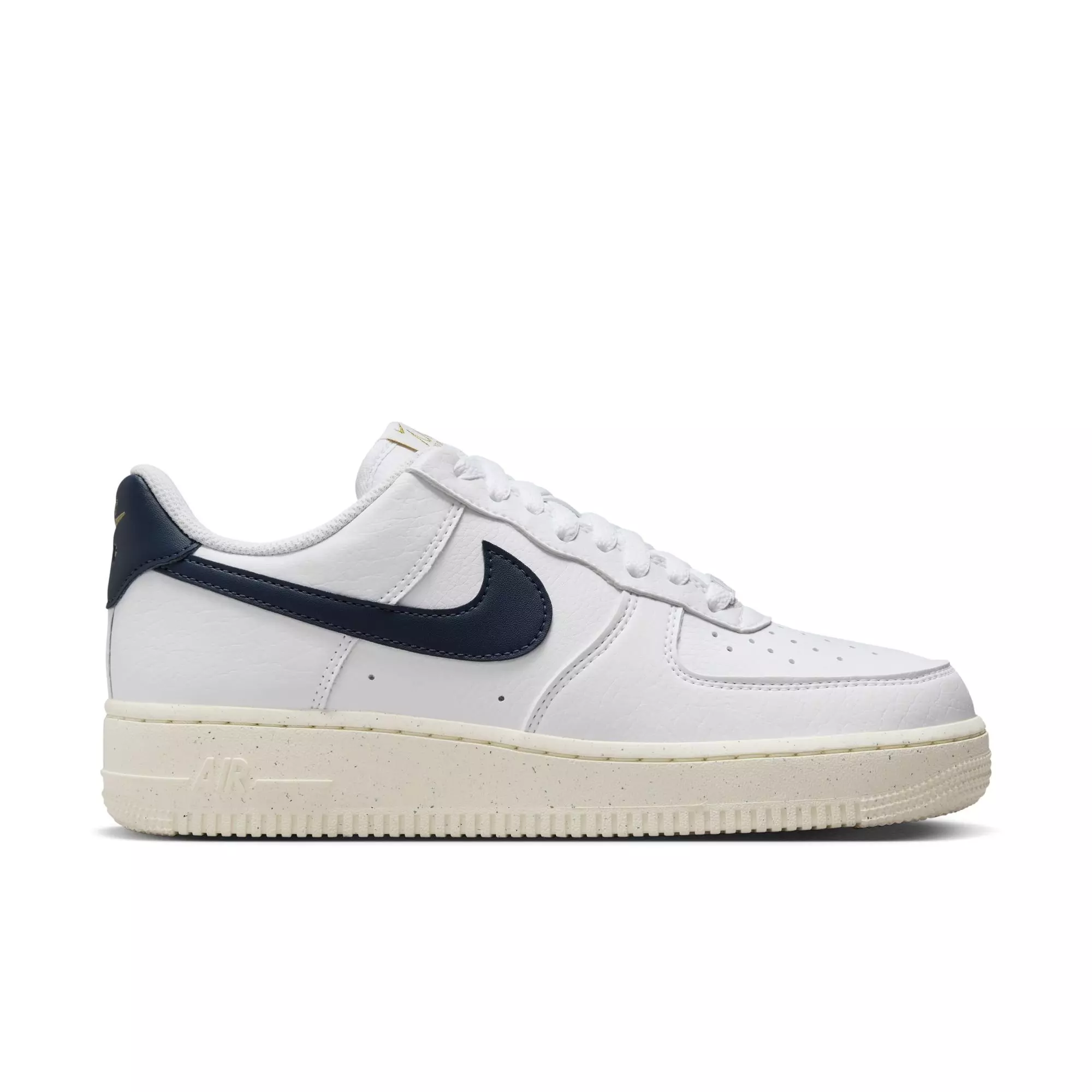 A Nike heritage classic made just for women, the Nike Air Force 1 '07 Next Nature "Obsidian" Women's Shoe is sure to elevate your style to the next level with its crisp leather edges, durable construction, and premier cushioning via the brand’s trademark Nike Air tech. The white-white version of this timeless silhouette is low-cut, making it perfect for pairing with cuffed multi-colored joggers, skinny jeans or printed or patterned leggings for any number of effortlessly fashionable fits. Dress your Air Force 1 07’s up by wearing them with a Nike Air women’s dress or dress them down with a pair of loose-fit Sportswear sweatpants and a cozy Sportswear Essentials pullover.Features