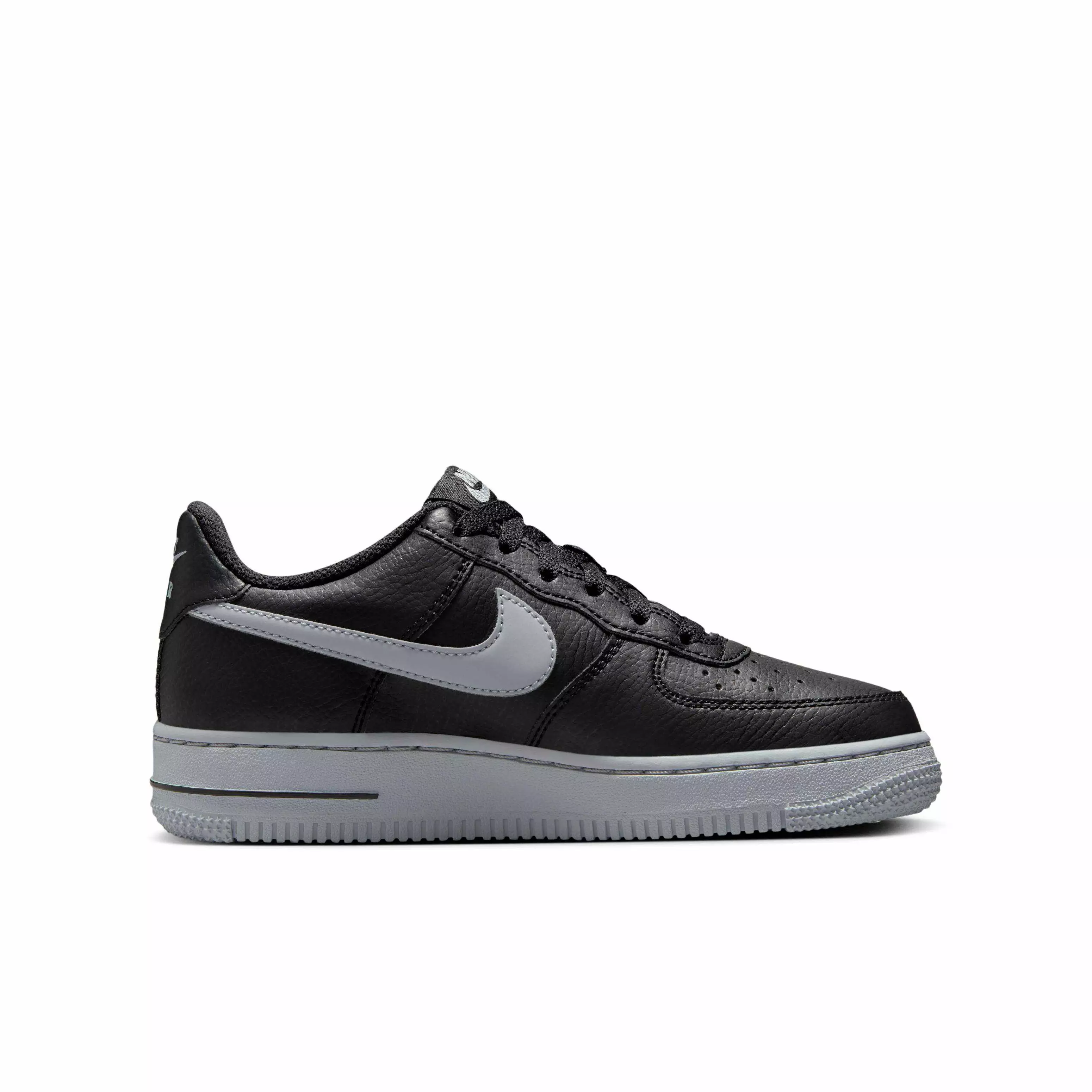 As cool today as when it first dropped more than 40 years ago, the Nike Air Force 1 "Black/Wolf Grey" Grade School Boys' Shoe is a classic you can count on. Its durable construction, Air cushioning and grippy tread will see you through recess after recess. And while they look great fresh out of the box, they remain cool even when covered in scuffs and scrapes. In fact, they might be even better.Features