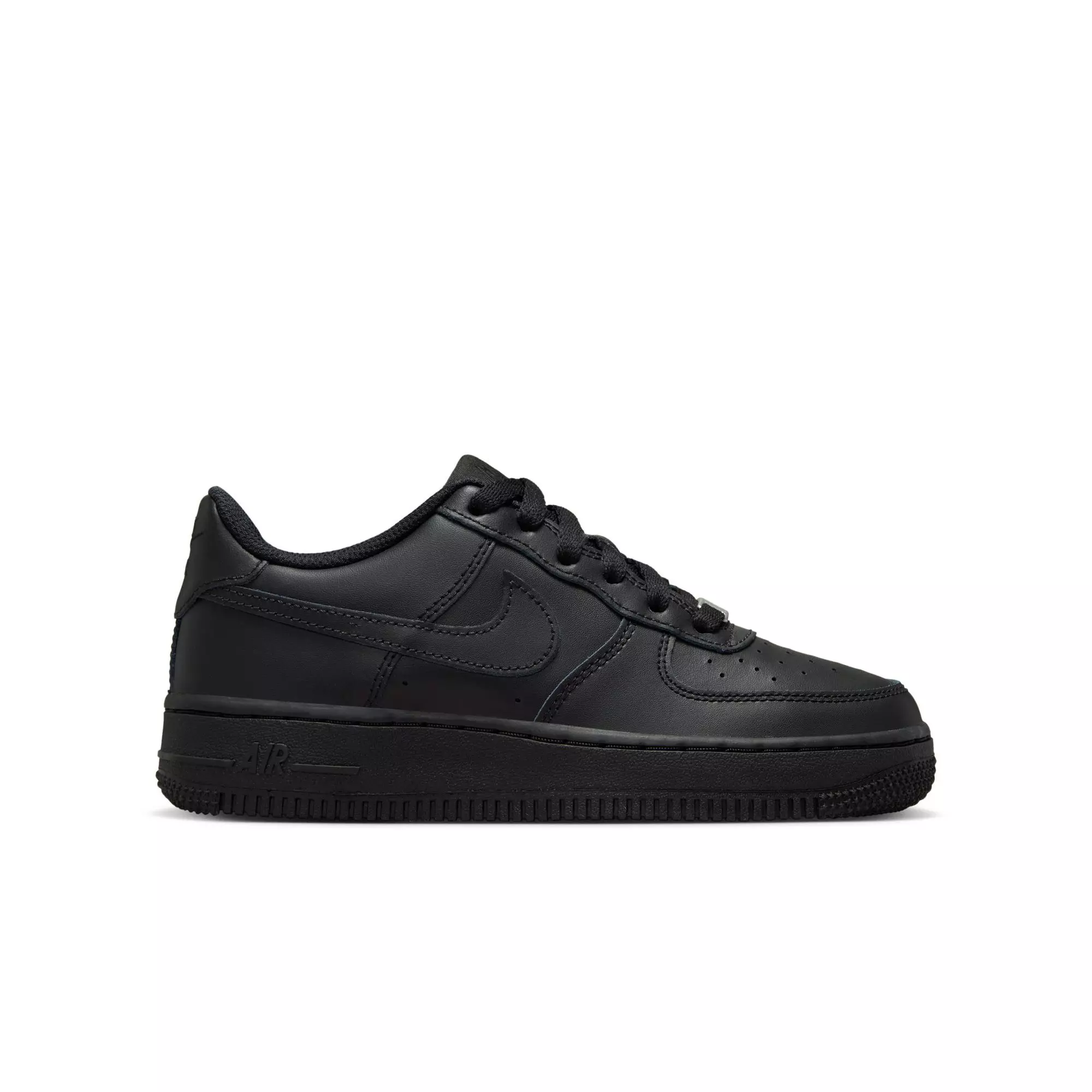 The Nike Air Force 1 LE BG "Black" Preschool Boys' Shoe features tough stitching and a grippy tread that helps children maintain traction on first days and rainy days and delivers lasting durability.