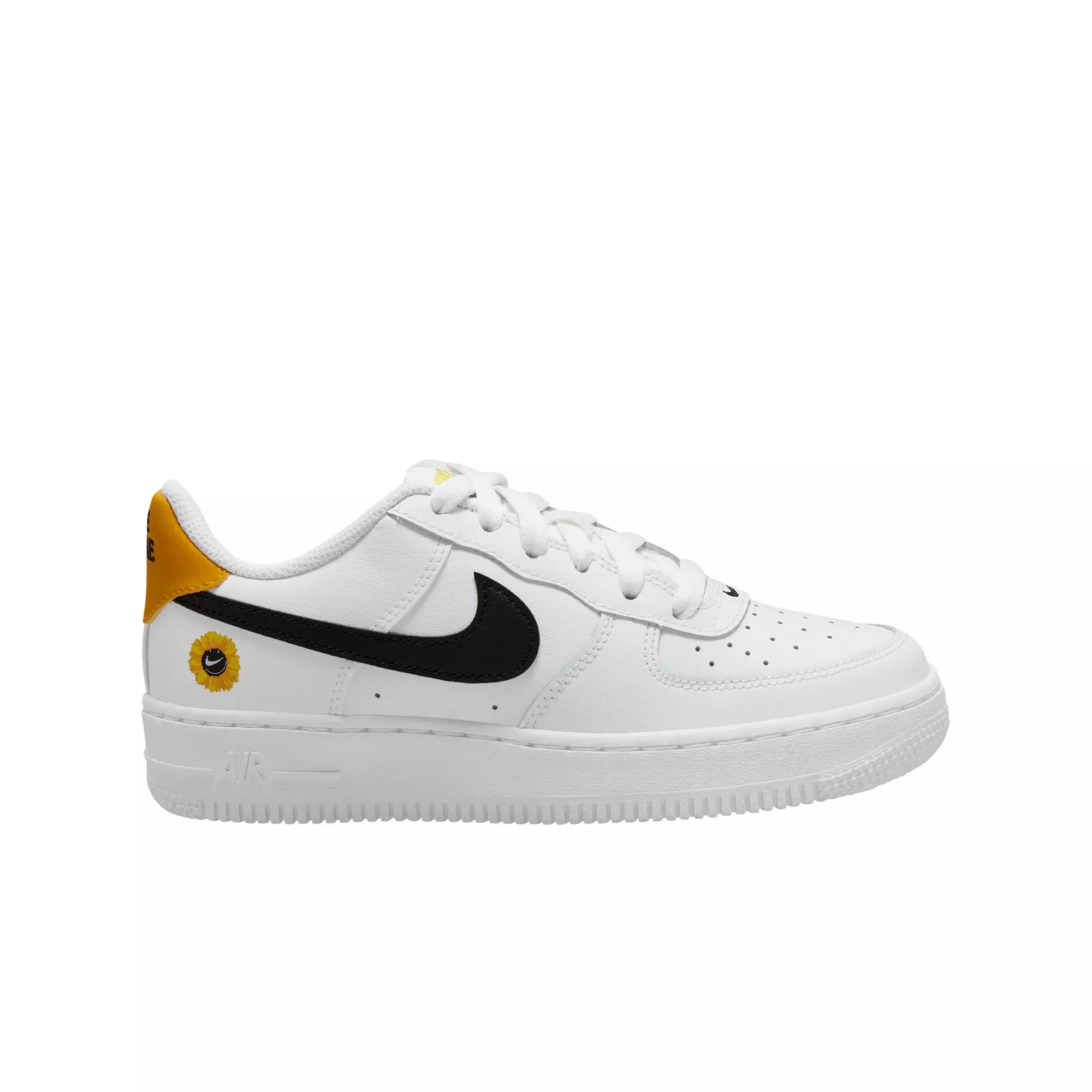 IT'S ALL GOOD.Lace up the feel-good vibes in the Nike Air Force 1 LV8 "White/Black/Dark Sulfur" Grade School Boys' Shoe, which combines classic AF1 lines with a friendly shout-out and flower graphic. A leather upper and soft Air unit underfoot deliver premium comfort and style, so you'll be all smiles, all day.