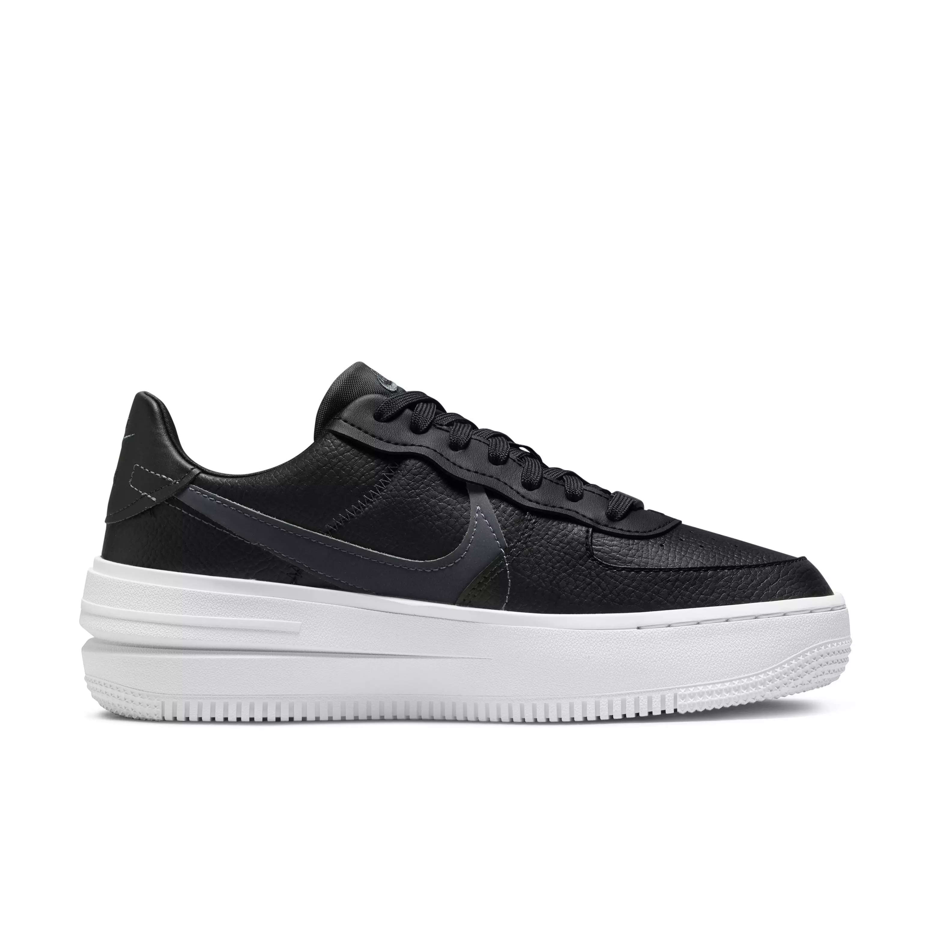Let classic, easy-to-wear AF1 style rise to the occasion with the Nike Air Force 1 PLT.AF.ORM "Black/Anthracite/White/Black" Women's Shoe. Its elegantly shaped and lifted midsole delivers a proud, new voice to the hoops franchise. The leather on the upper breaks in easily and ages to soft perfection while the sculpted collar and pillowy heel keep it comfy. Captivate your audience.