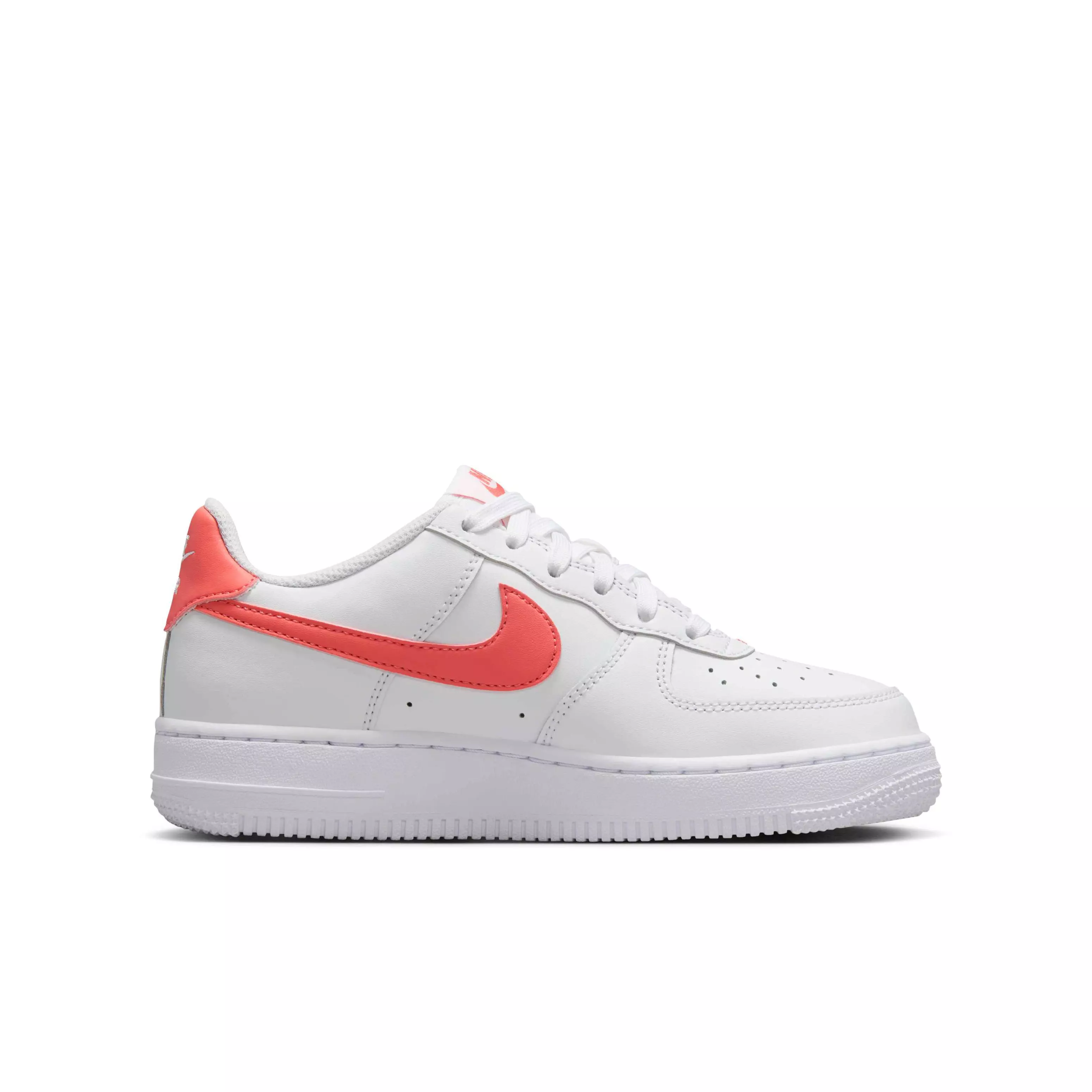 As cool today as when it first dropped more than 40 years ago, the Nike Air Force 1 "White/Magic Ember" Grade School Girls' Shoe is a classic you can count on. Its durable construction, Air cushioning and grippy tread will see you through recess after recess. And while they look great fresh out of the box, they remain cool even when covered in scuffs and scrapes. In fact, they might be even better.Features