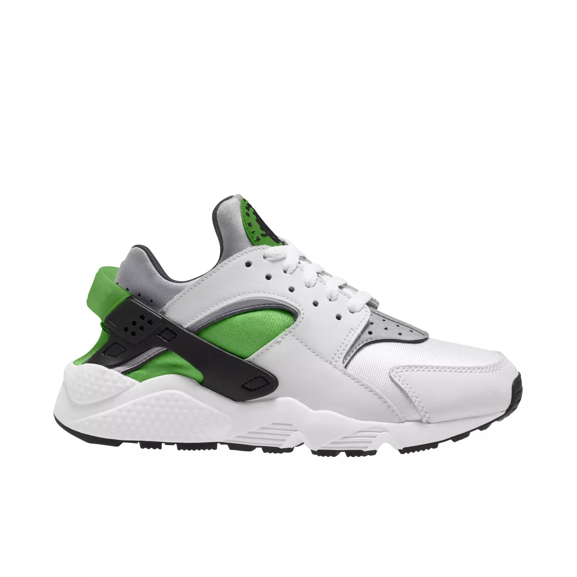 Built to fit your foot and designed for comfort, the Nike Air Huarache "White/Wolf Grey/Chlorophyll/Black" Women's Shoe brings back the street-level favorite. Smooth leather on the upper mixes with super-breathable, perfectly shined neoprene-like fabric for easy styling. The low-cut collar and bootie-like construction keep it sleek and comfy. The iconic heel clip and stripped away branding keep the original '90s running look you love.Features
