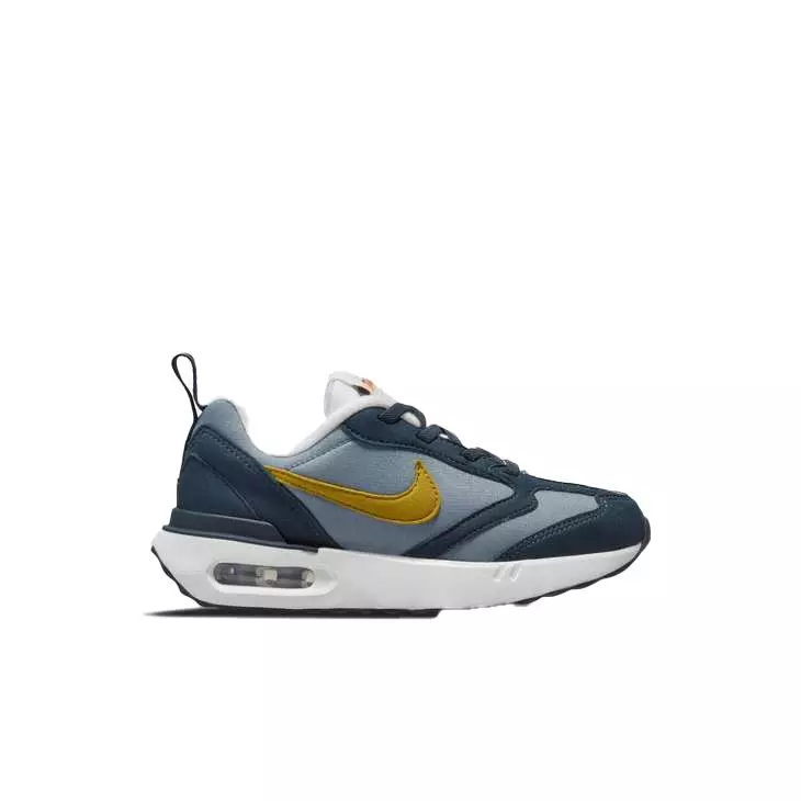 In the Air Max world, it’s a new day with the Nike Air Max Dawn "Particle Grey/Dk Citron/Armory Navy" Preschool Boys' Shoe. We bring classic vibes with soft suede details and build a look for the future with at least 20% recycled materials by weight. Simple, versatile and cushioned with Air—kiddos can’t go wrong starting their day off with these kicks.