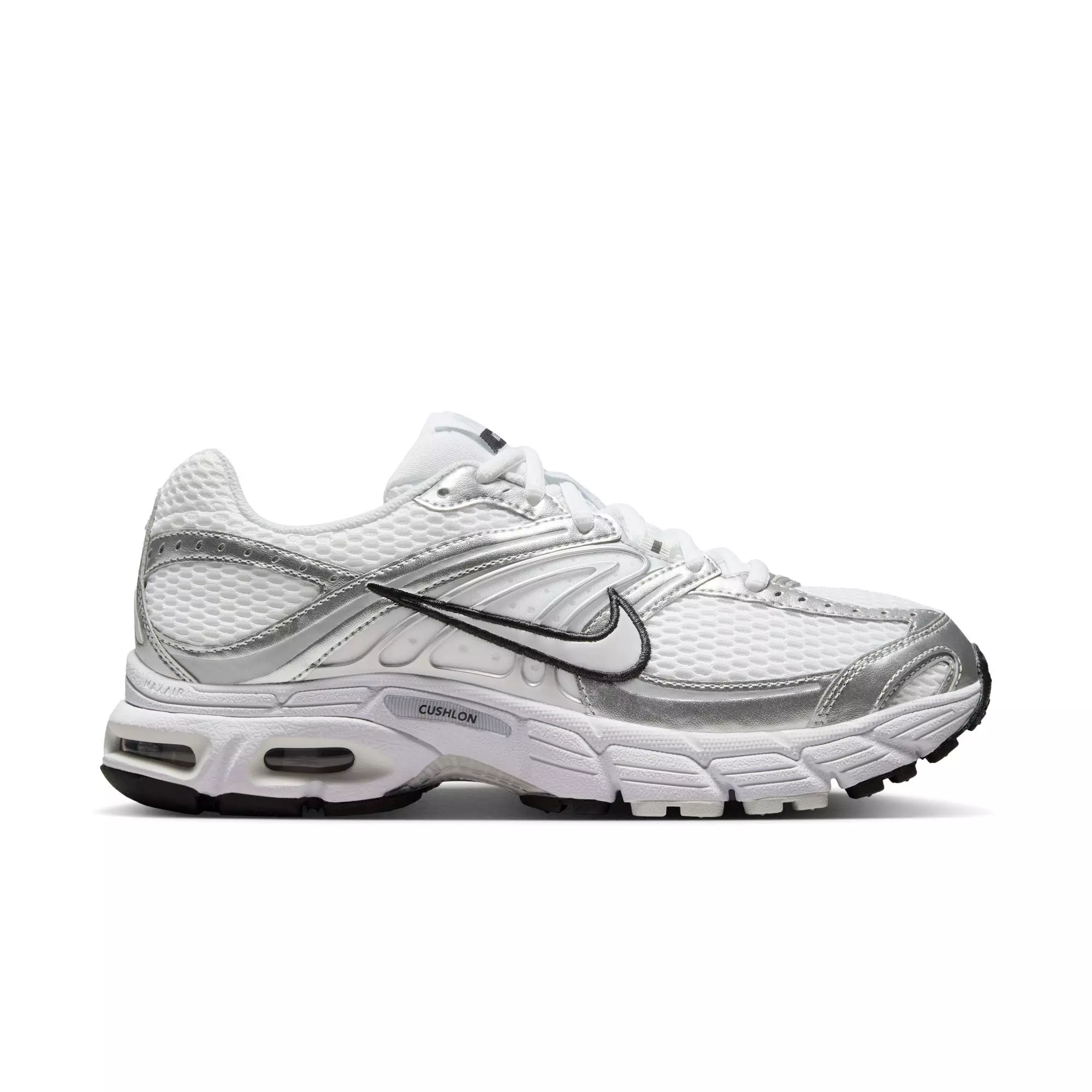 Familiar yet fresh, the Nike Air Max Moto 2K "White/Photon Dust/Metallic Silver/Black" Women's Shoe brings a sleek 2000s-inspired look with metallic accents. Soft cushioning and visible Max Air underfoot help smooth every step, while performance-driven details keep your stride supported from warmup to cooldown.
