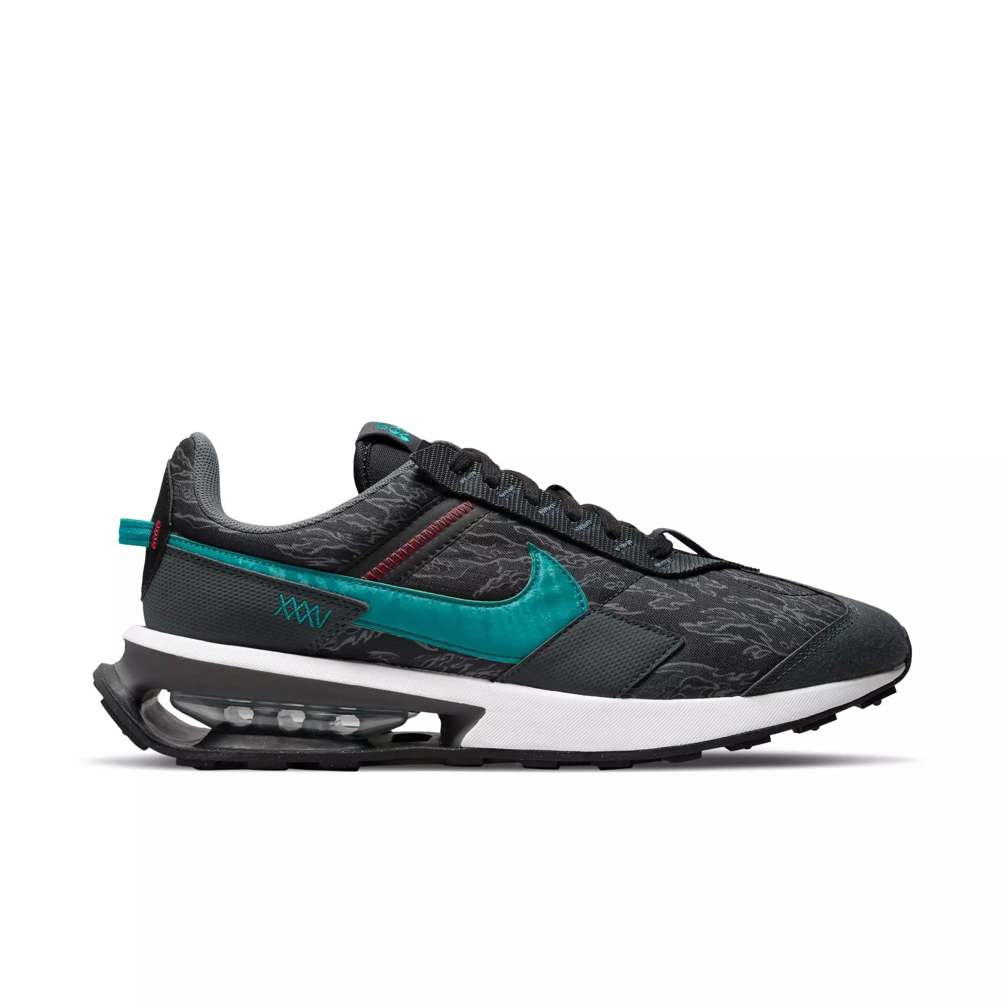 Taking the classic look of heritage Nike running into a new realm, the Nike Air Max Pre-Day SE "Black/Fresh Water/Anthracite" Men's Shoe brings you a fast-paced look ready for today’s world. Made from at least 20% recycled materials by weight, the upper keeps the retro track aesthetic you know best, while the Air window modernizes the look.
