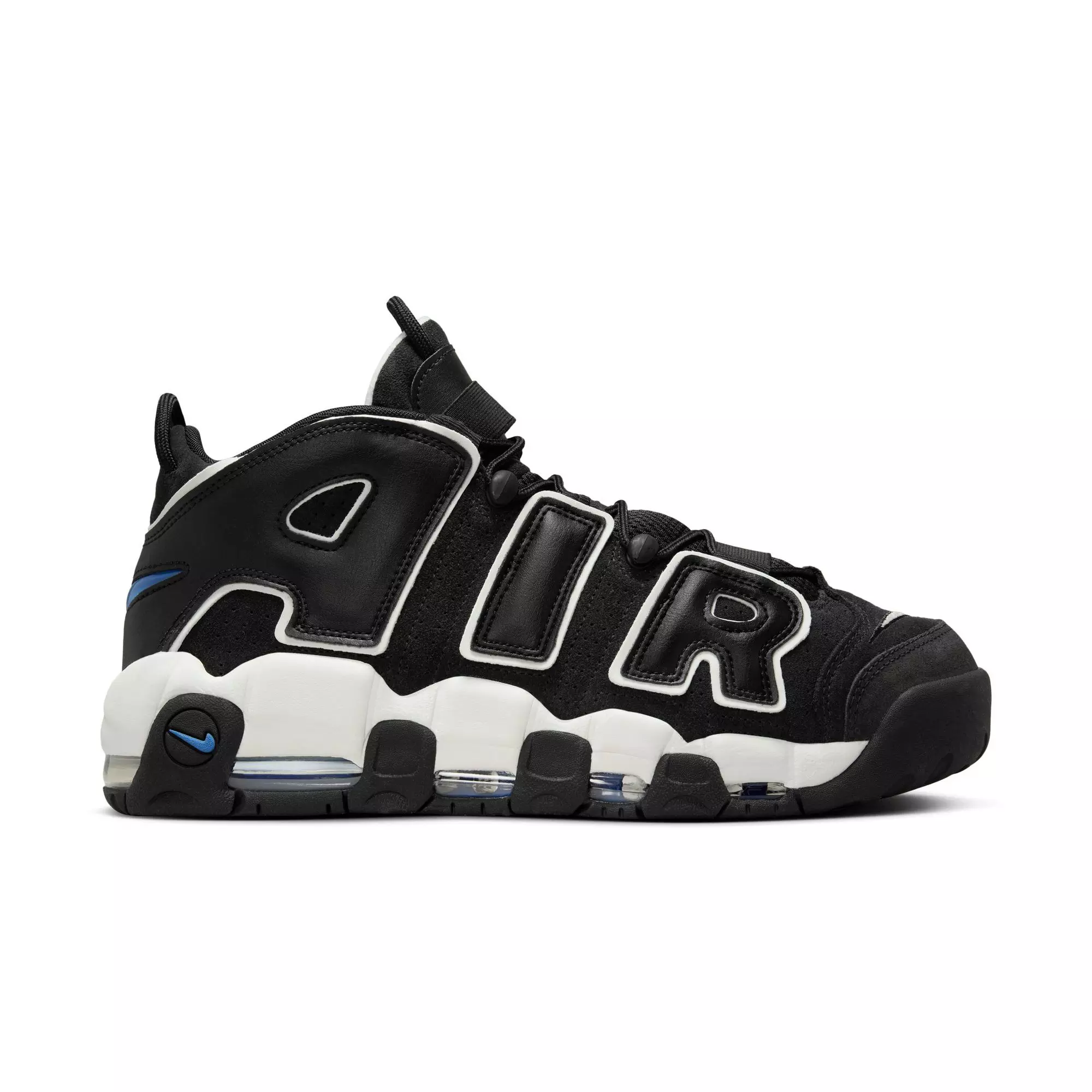 Bold, eye-catching and all about the A-I-R. The Nike Air More Uptempo '96 Scottie Pippen "Black/Star Blue/Summit White/Sail" Men's Shoe refreshes an original that has reigned supreme for more than 20 years. With a design inspired by high-flying basketball style and '90s graffiti art, these kicks can't help but turn heads off court. Plus, Air units in the heel, forefoot and midfoot provide comfortable cushioning so you feel as good as you look.Features