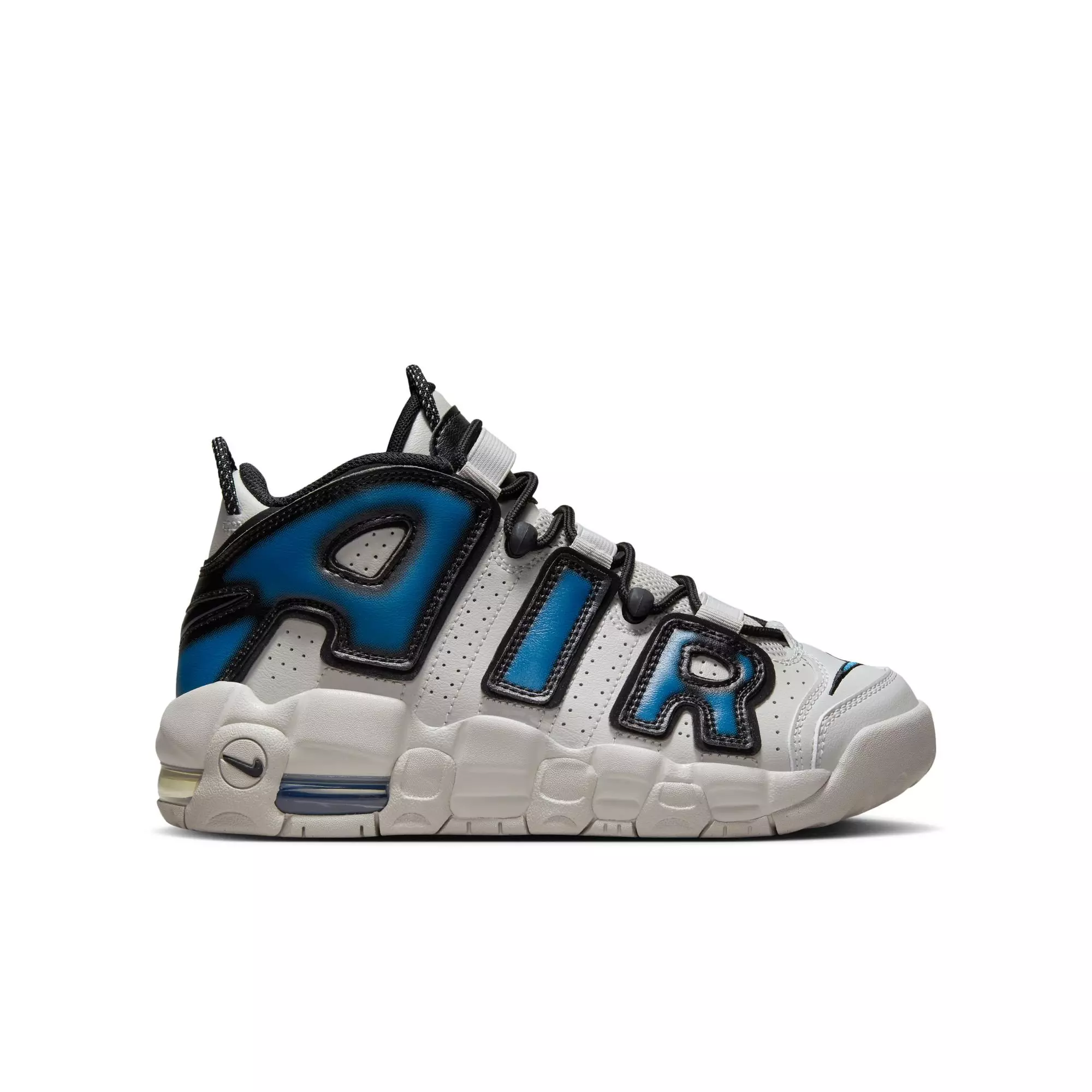 Experience the hype of the Nike Air More Uptempo in a sleek gray and white colorway. Dominate the court and showcase your skills in this eye-catching design.