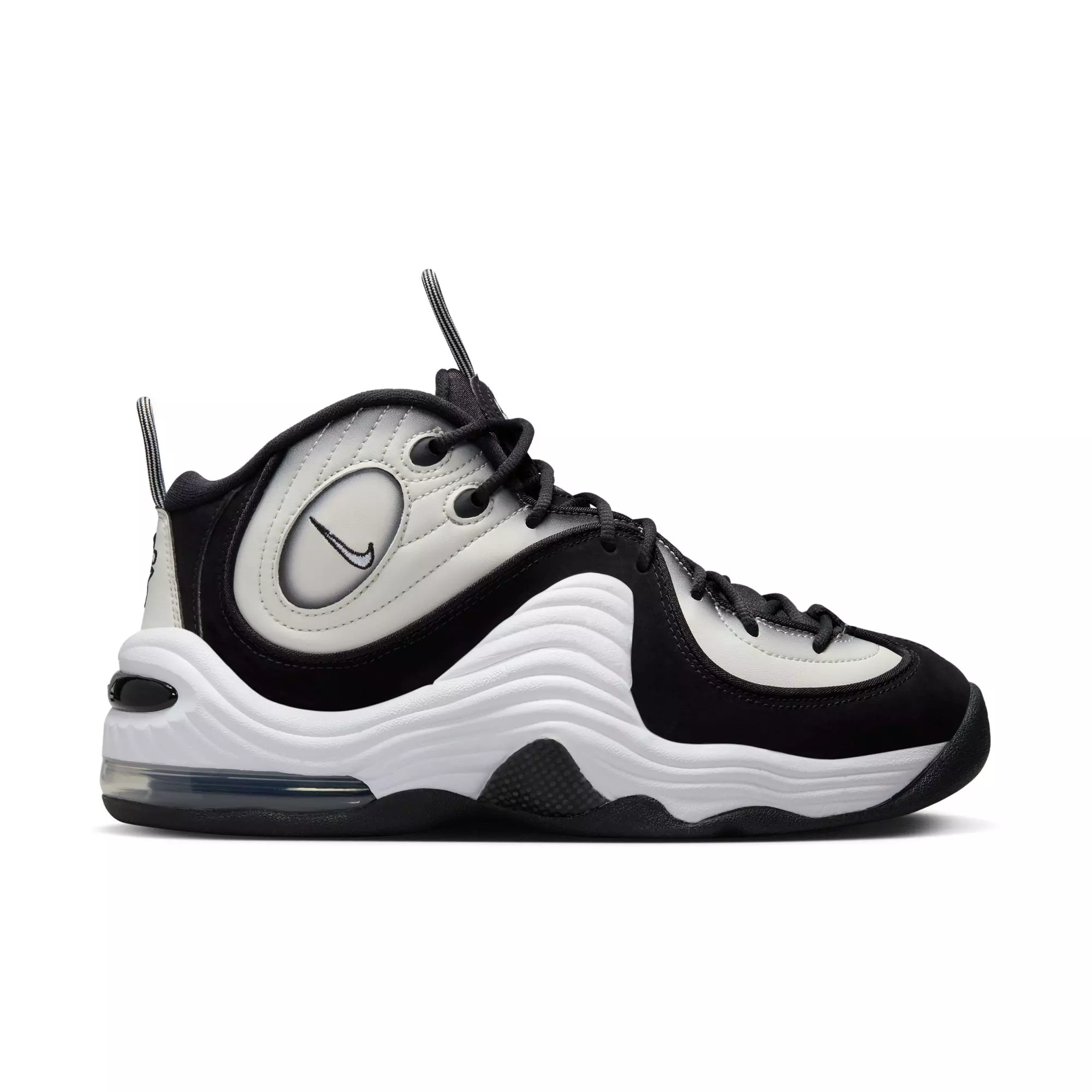 Flash back to '96 in the Nike Air Penny 2 "Panda" Men's Shoe. Bold and unmistakable, it was the first Air Penny to combine Max and Zoom Air technology. The iconic “1 cent” logo adds our stamp of approval, while visible Nike Air cushioning delivers coveted, all-star comfort.