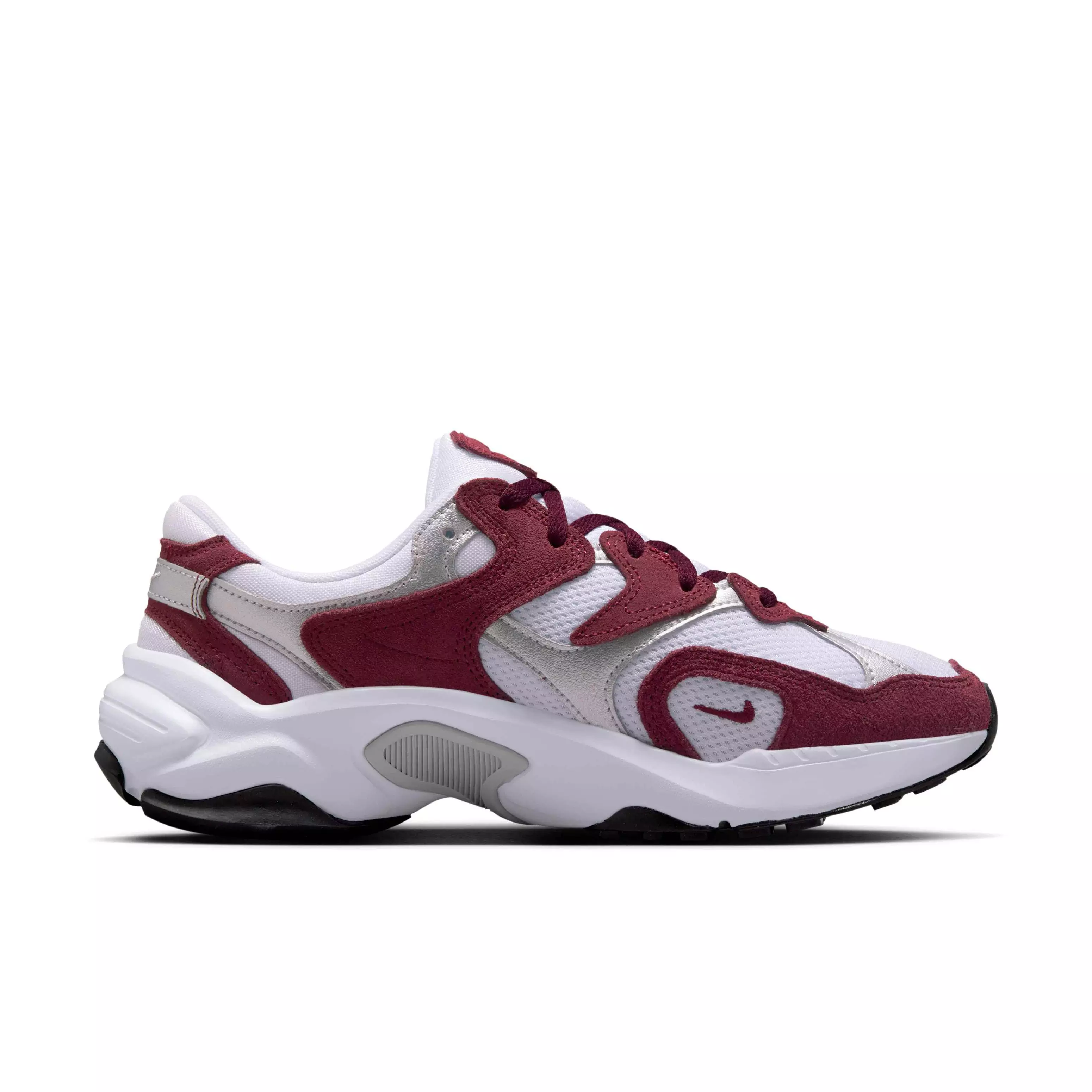 The Nike AL8 "Dark Team Red/Cool Grey/Metallic Silver/White" Women's Shoe is the perfect mix of nostalgia (peep the embroidered Swoosh) and the modern comfort you love. The plush upper combines breathable mesh and a chunky silhouette for a sporty look that's easy to style. Plus, a flexible Waffle sole references retro running shoes while providing the traction you need to go all day. Inspired by the '90s, ready for the future.