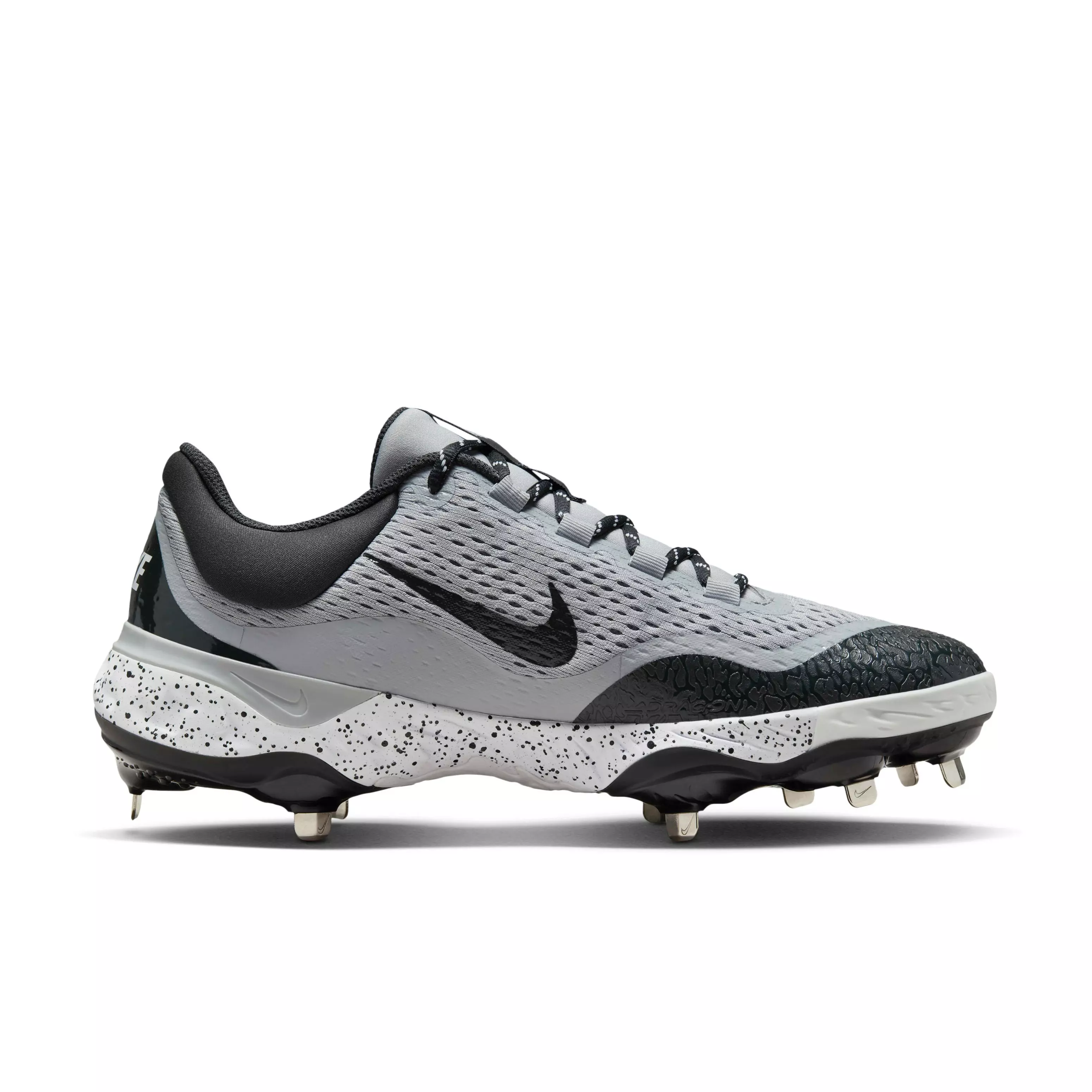 You gain quick, responsive strides with the Nike Alpha Huarache Elite 4 Low MCS "Wolf Grey/White/Dark Smoke Grey" Men's Baseball Cleat thanks to its React midsole. Its plush, breathable mesh upper secures your foot without adding bulk and promotes airflow.