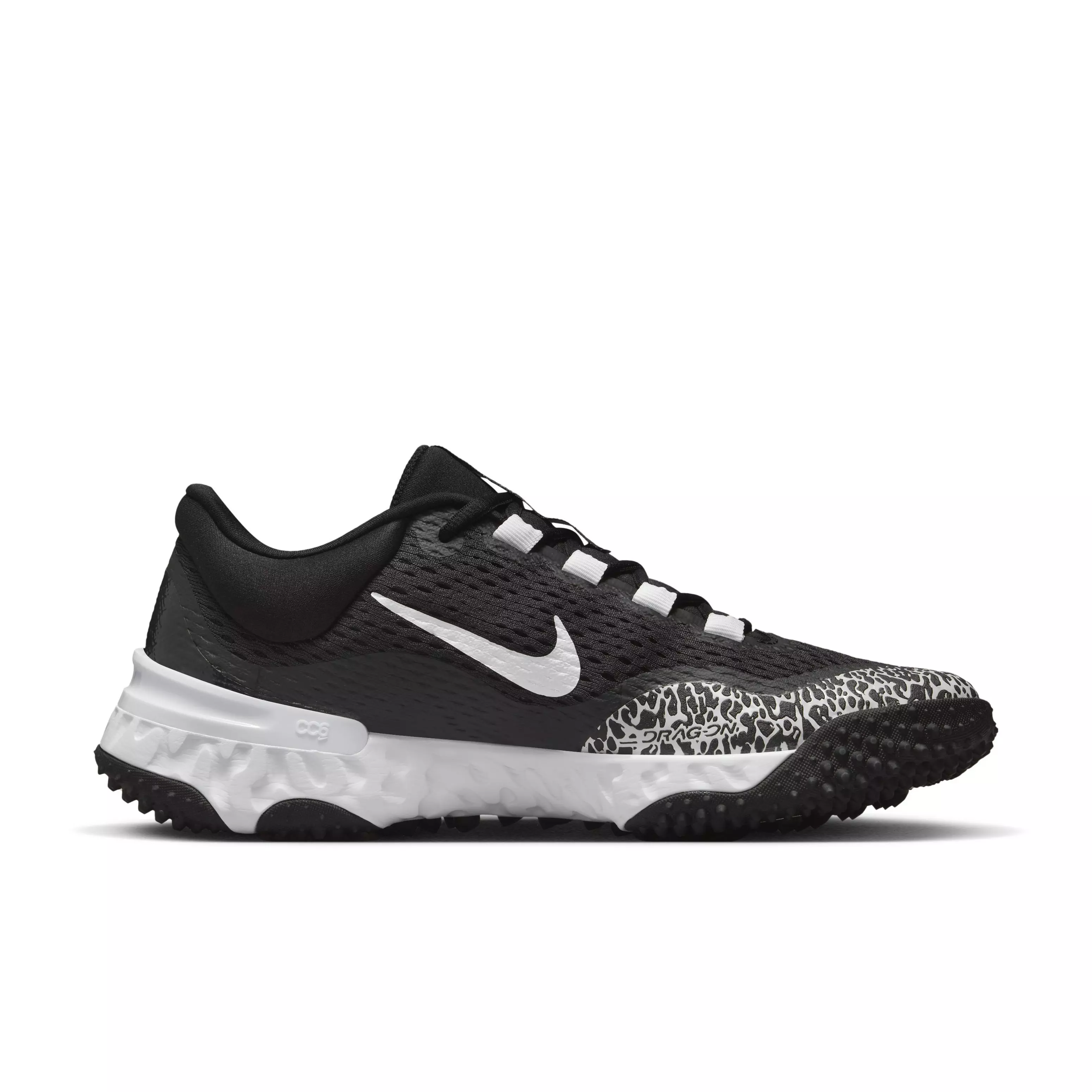 Make the memorable plays when it matters most. With sneaker-like comfort and multipurpose playability for all positions, this is the Nike Alpha Huarache Elite 4 Turf "Black/Dark Smoke Grey/Mint Foam/White" Women's Softball Shoe that can help you impact the game for innings on end. An aggressive traction pattern and rubber pegs provide confidence and security when you race around the bags or get a bead on an incoming line drive in the field.Features