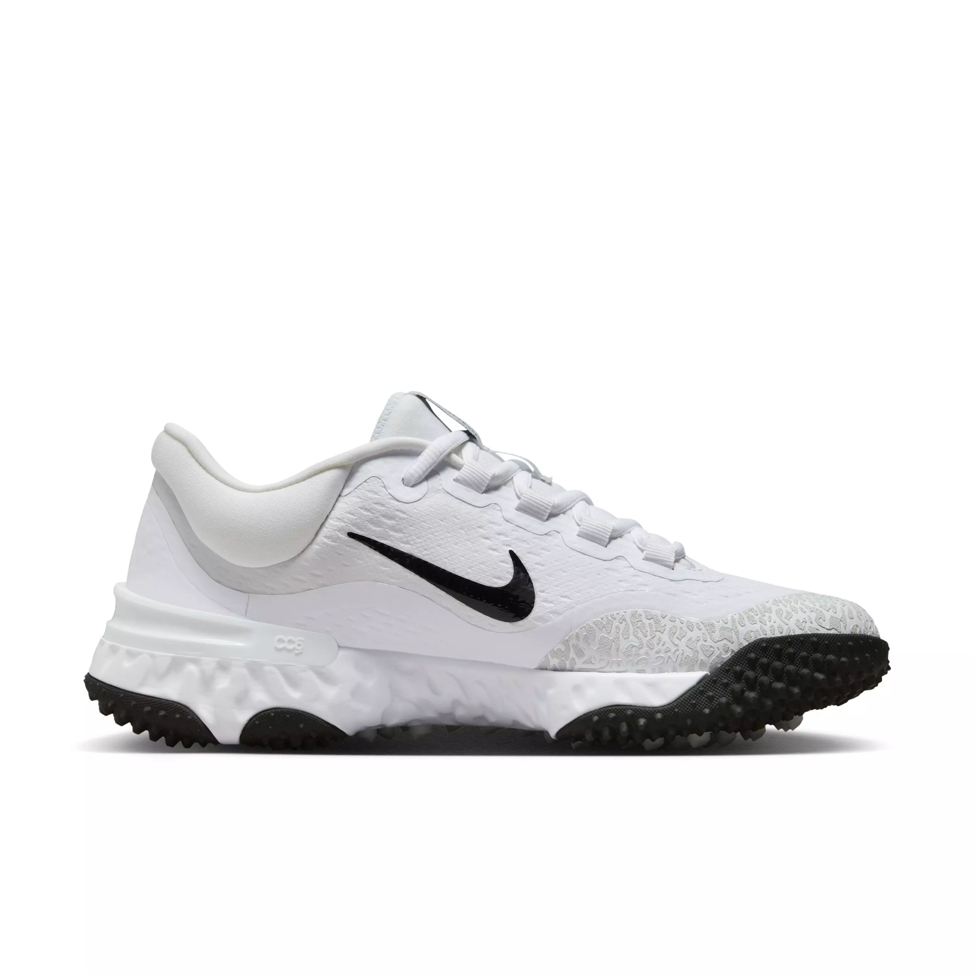 Make game-changing plays with sneaker-like comfort and multipurpose performance. The Nike Alpha Huarache Elite 4 Turf "White/Black/Photon Dust" Women’s Softball Shoe helps you stay fresh through extra innings.