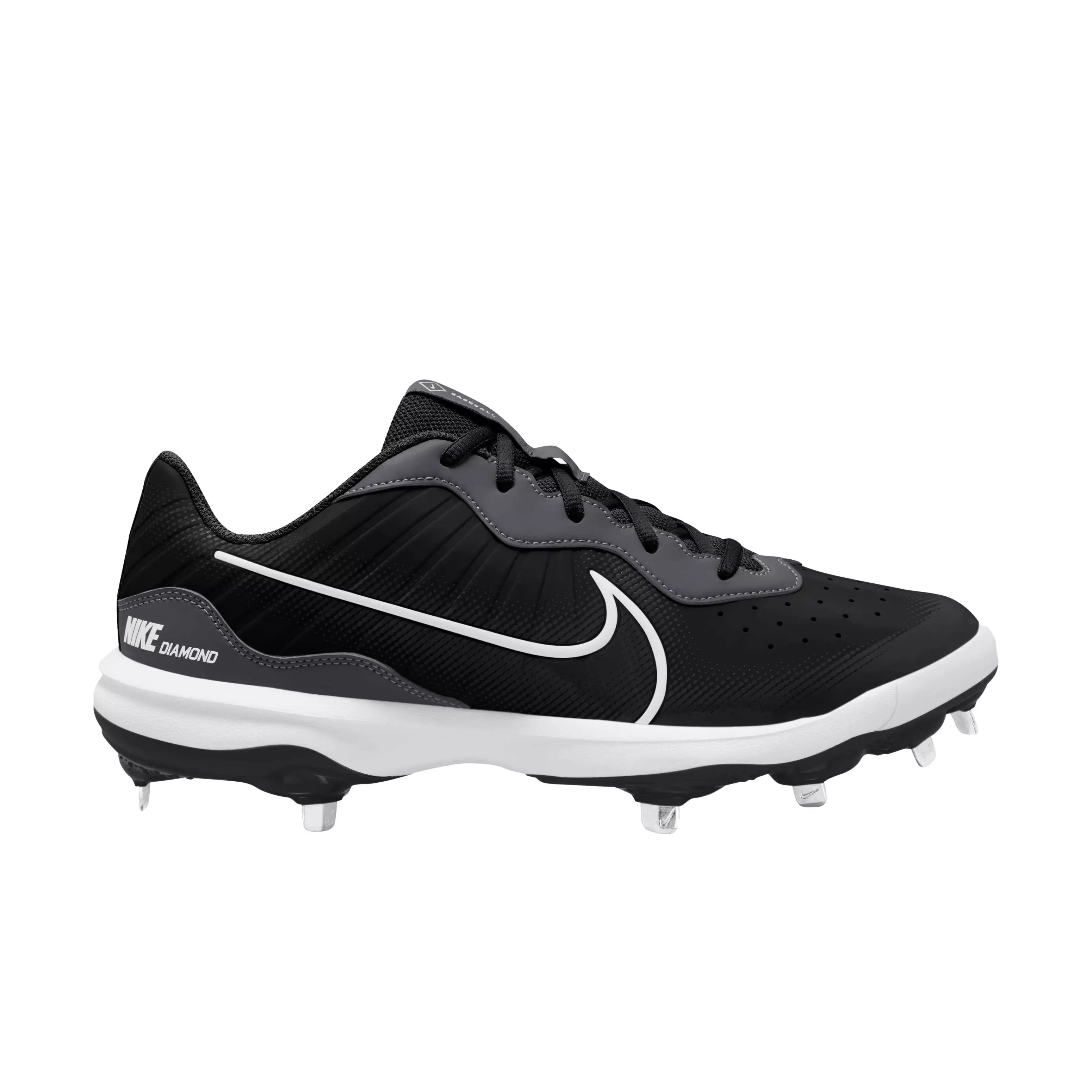 Let the baseball world know what kind of bat-wielding beast you are with Nike Alpha Huarache Varsity 4 Low "Black/White/Dk Smoke Grey" Men's Baseball Cleat. The midsole has plush cushioning, perfect for sprinting around the bags or robbing your opponent of extra bases in the field. The plush, breathable upper helps keep you contained without adding any unnecessary weight. Plus, the grippy rubber traction is tailor-made for all-out effort plays.Features