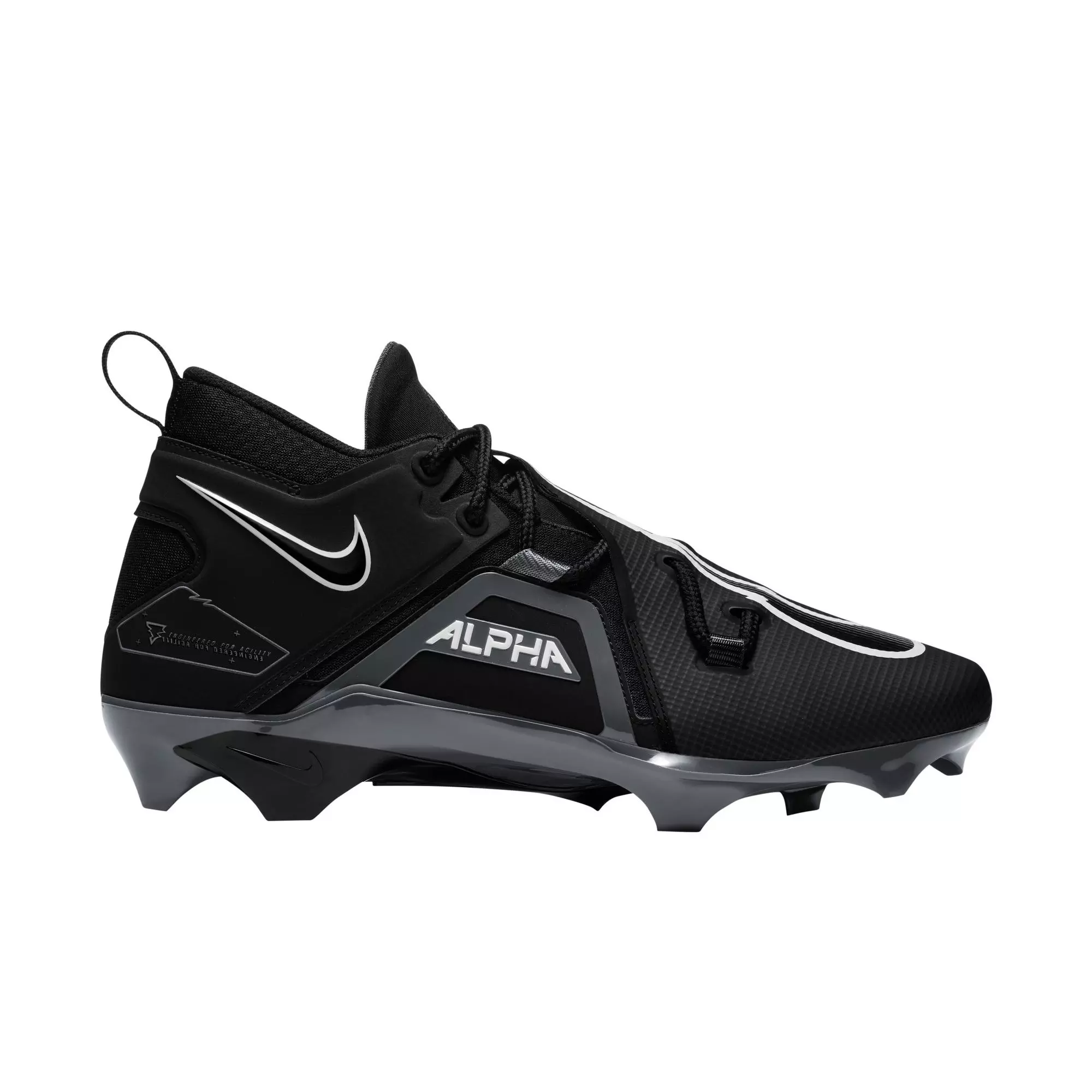 The Nike Alpha Menace Pro 3 "Black/White/Iron Grey" Men's Football Cleat takes game-time performance to the next level with added support on the sides and a revamped plate that helps propel you forward while stabilizing each step. The wider cleat pattern grips the field from practically any angle—whether you're digging in for contact or exploding off the line.Features