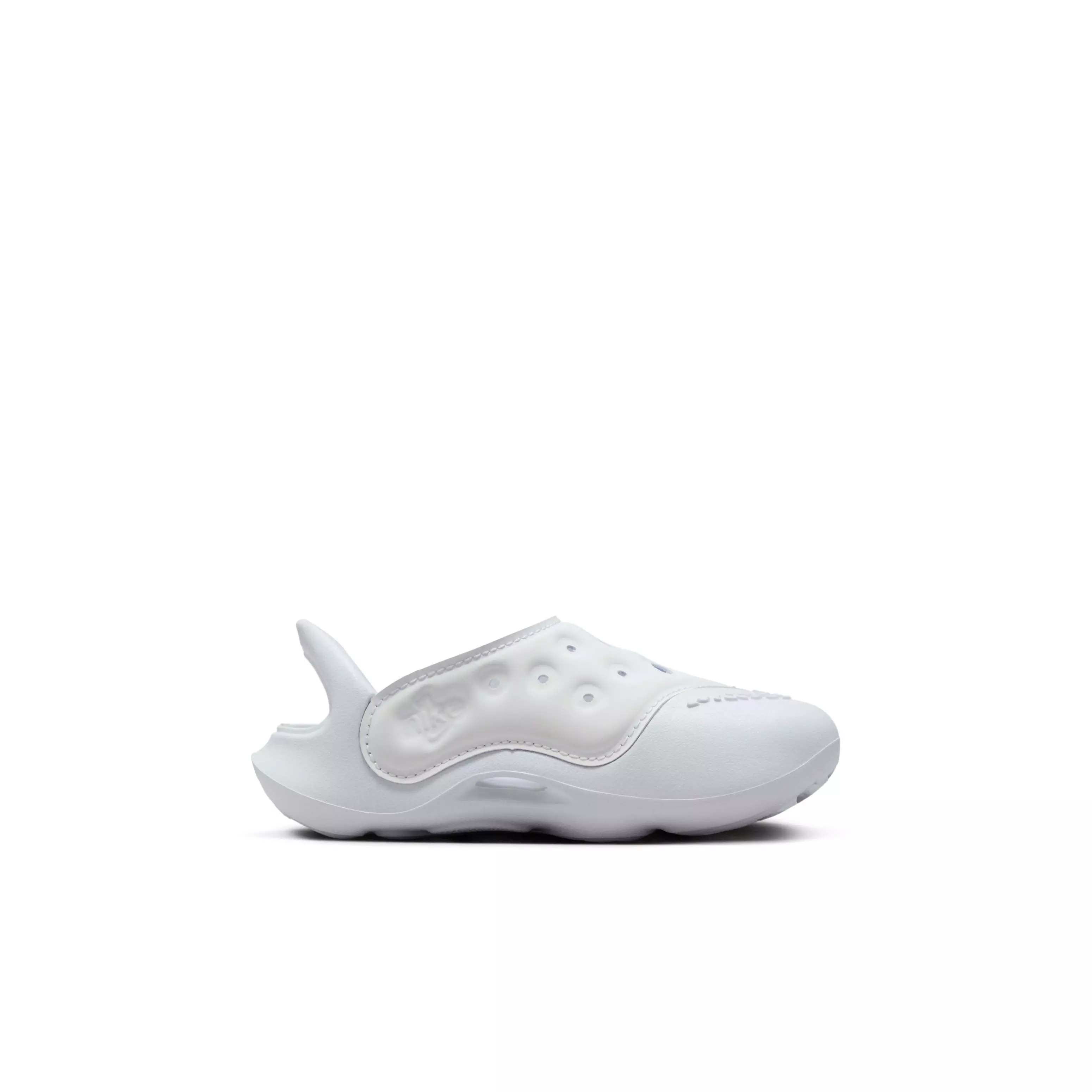 From sunny pool days to creek-side play, the Nike Aqua Swoosh "White/Pure Platinum/Volt" Infant Boys' Sandal keeps little feet comfy and secure. Soft textile up top and plush foam cushioning underfoot feel gentle, while the adjustable heel strap helps lock in the fit for worry-free steps.