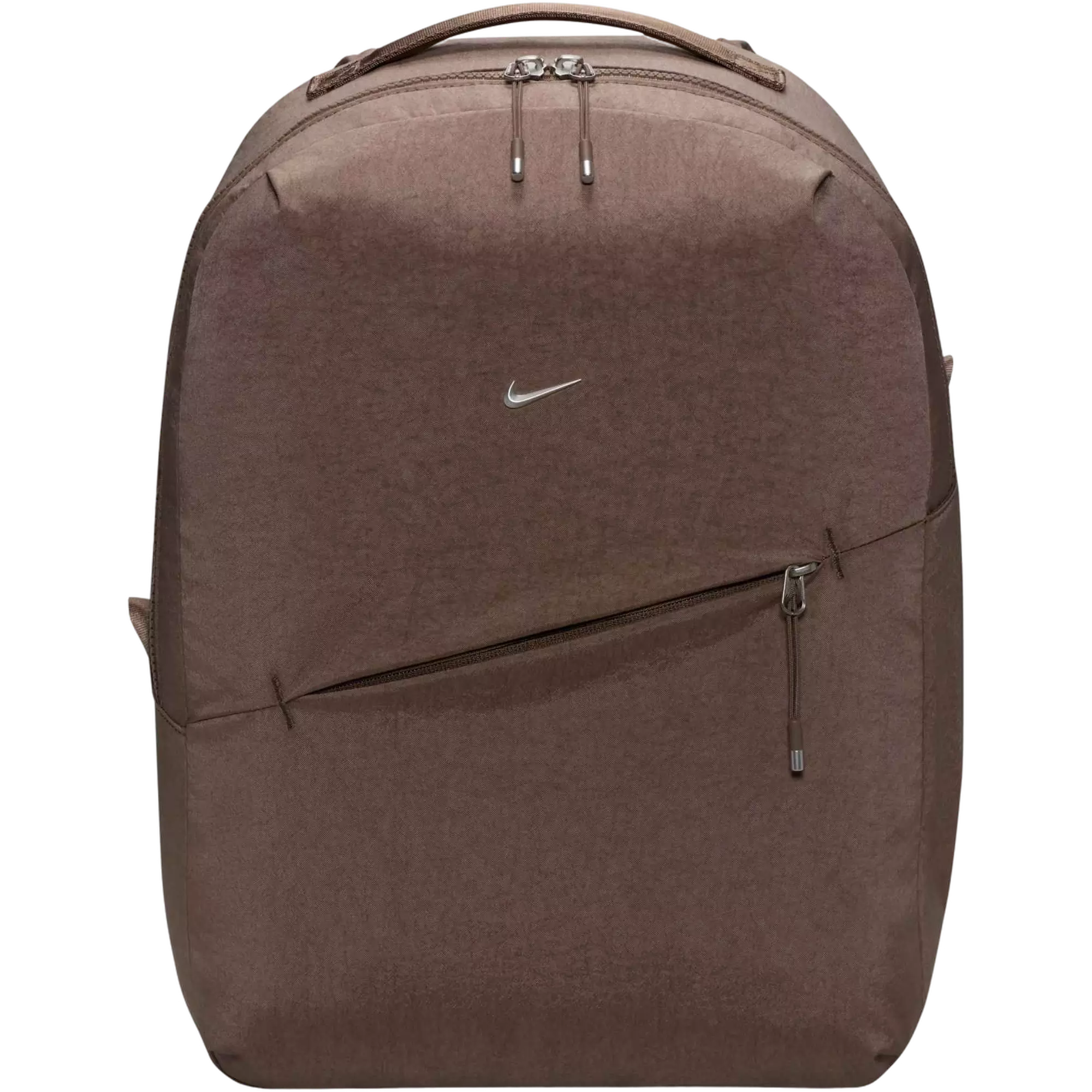 Keep your essentials close and your style game on point with the Nike Aura 24L Backpack in brown. The streamlined 24-liter capacity is ideal for daily commutes and campus days, with a front zip pocket for quick-grab items and an interior slip pocket that fits most laptops to keep tech protected and organized.Padded shoulder straps help provide comfortable carry, while durable fabric stands up to everyday use. A spacious main compartment offers room for layers, notebooks, and gym gear, and dual side pockets can hold water bottles or umbrellas to keep you moving with ease.