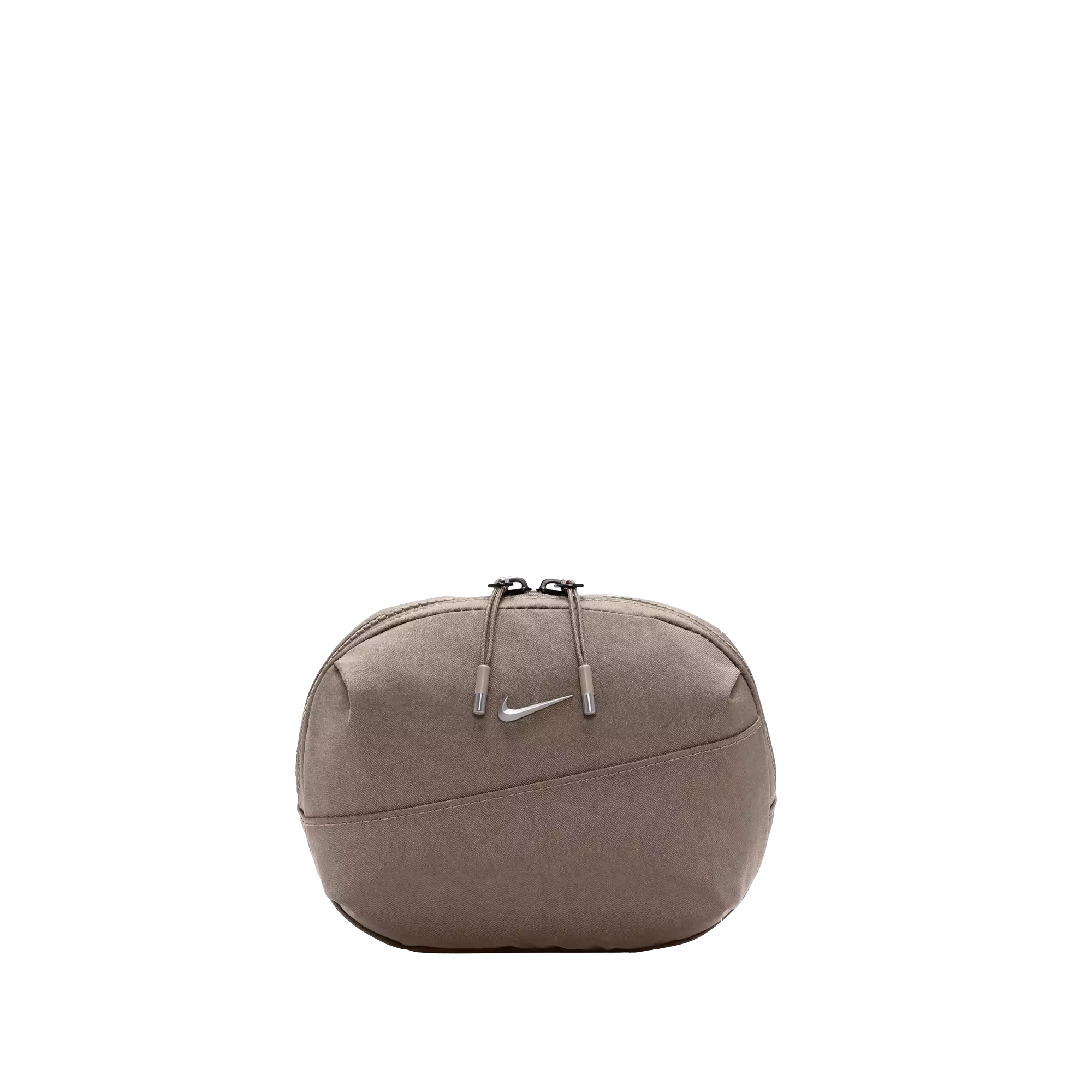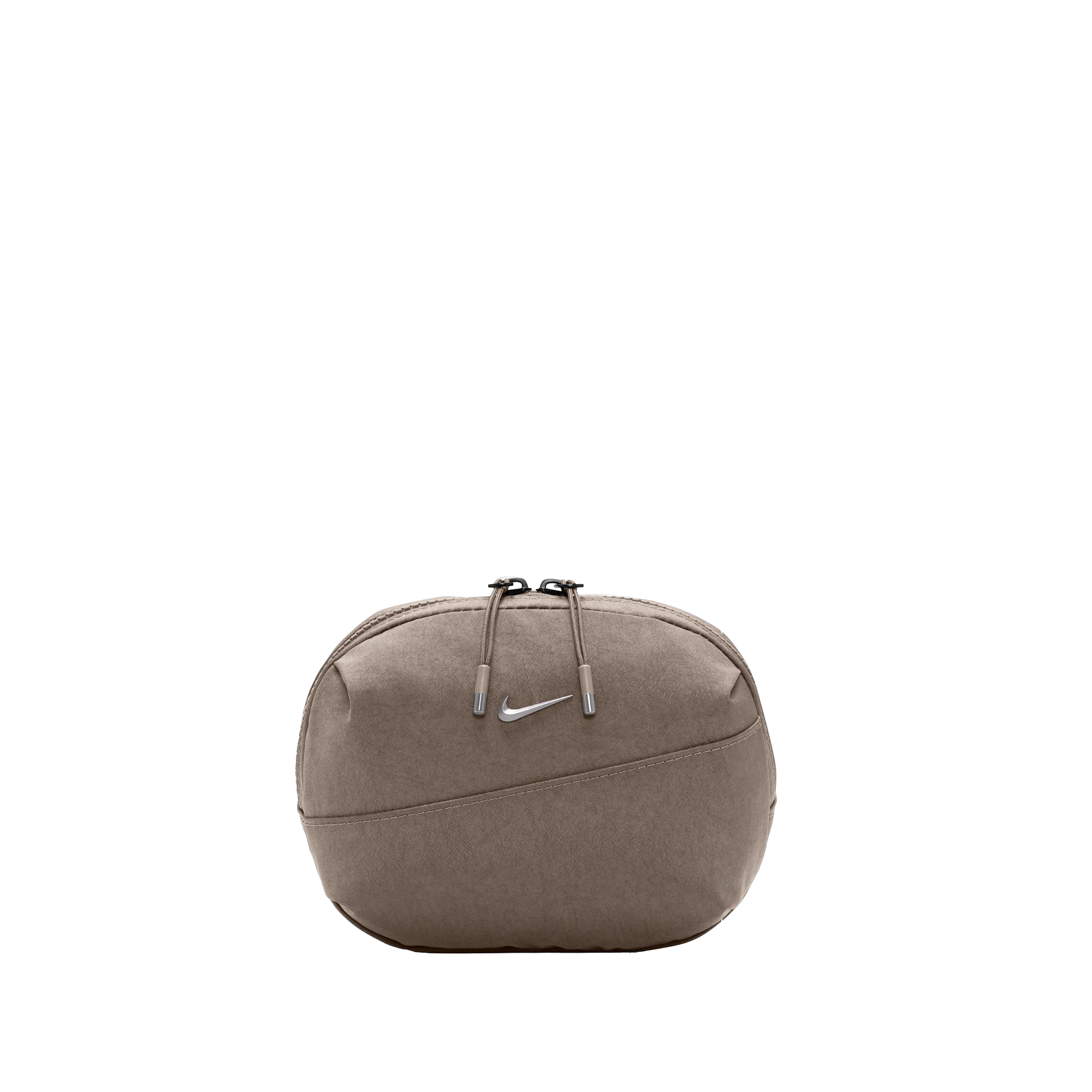 Interior slip pockets organize gear. The aluminum Swoosh logo adds a sleek accent. An adjustable strap offers multiple wearing options. The brown finish blends seamlessly with casual and active looks.