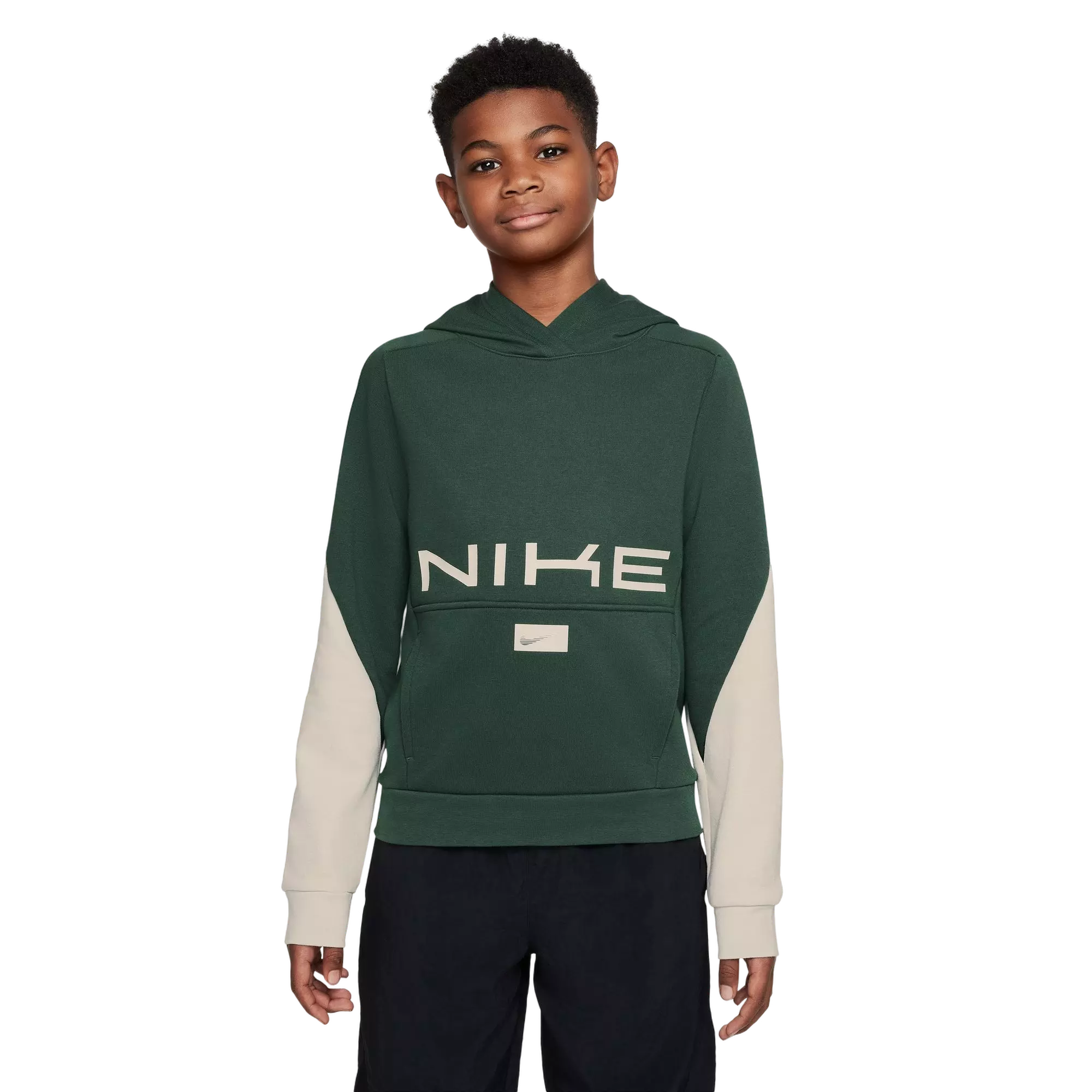 Step onto the field in a breathable French terry Nike Big Boys' Multi Dri-FIT Fleece Pullover Hoodie that wicks sweat to keep you cool when temperatures rise. Its pullover design delivers easy layering and unrestricted movement.