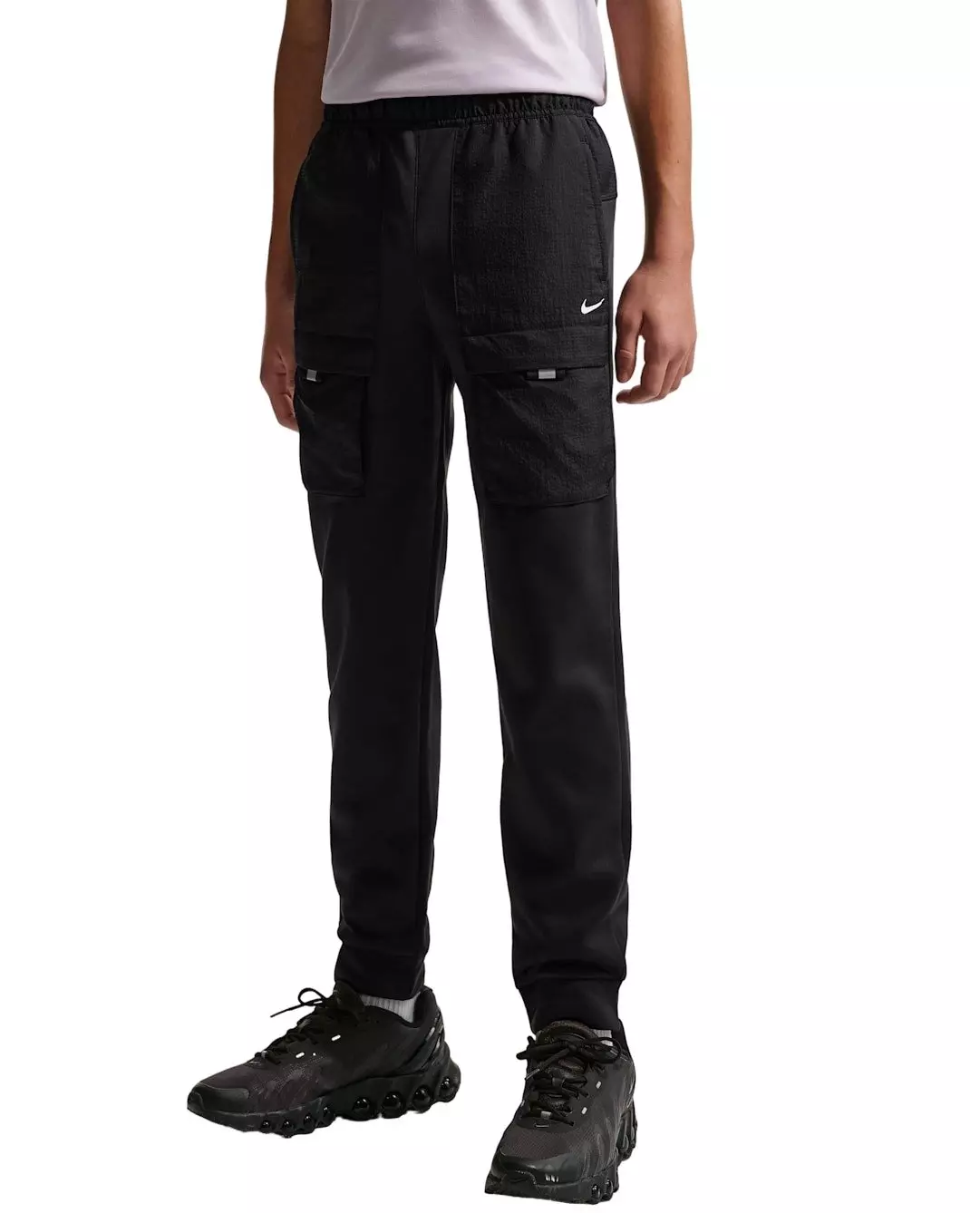 Designed for dynamic use, the Nike Big Boys' Sportswear City Utility Pants - Black are ready for anything. More room in the leg lets you move without restriction, and plenty of deep pockets let you store your every day treasures within reach so you can help keep your hands free and your fit streamlined.Features