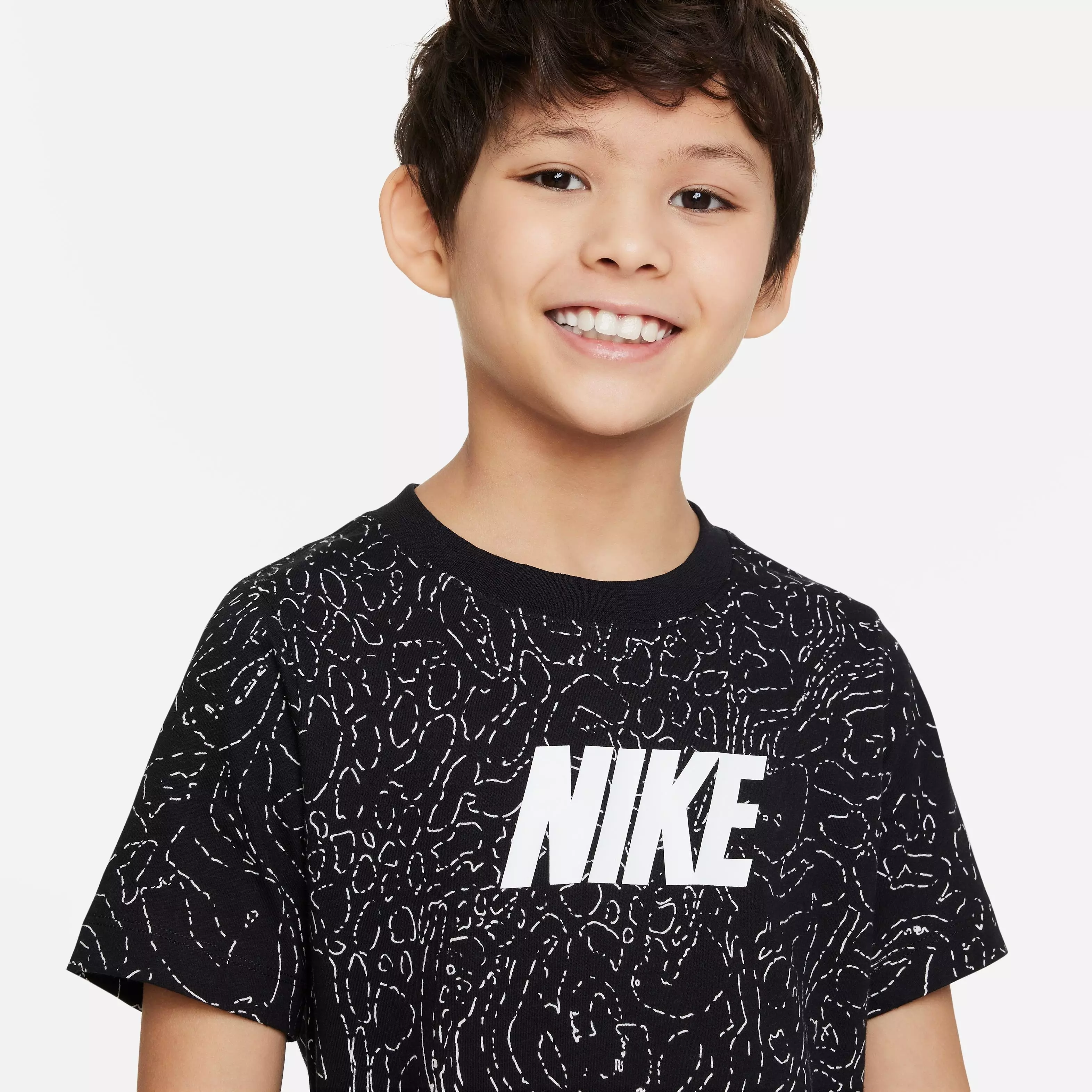 Nike Big Boys' Sportswear Club Season All Over Print Tee-Black