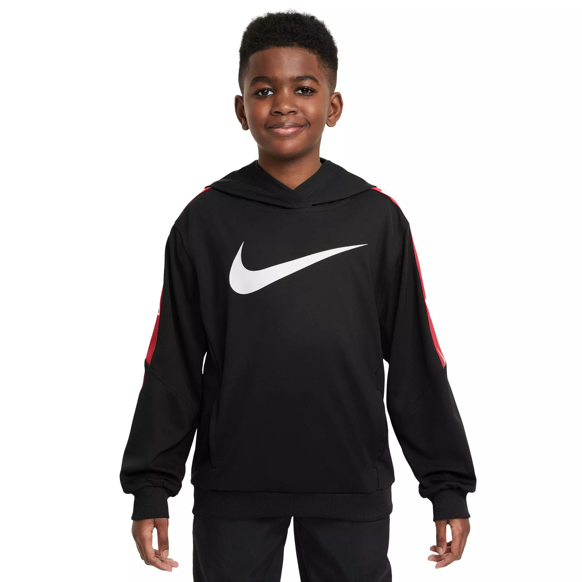 Everything you love about your favorite Club Fleece + a little more. Brushed for added warmth and softness, this knit Nike Big Boys' Sportswear Club+ Pullover Hoodie has the extra smooth look and feel of a tracksuit. Printed tape on the shoulders sprinkles in a little extra Swoosh to your look.