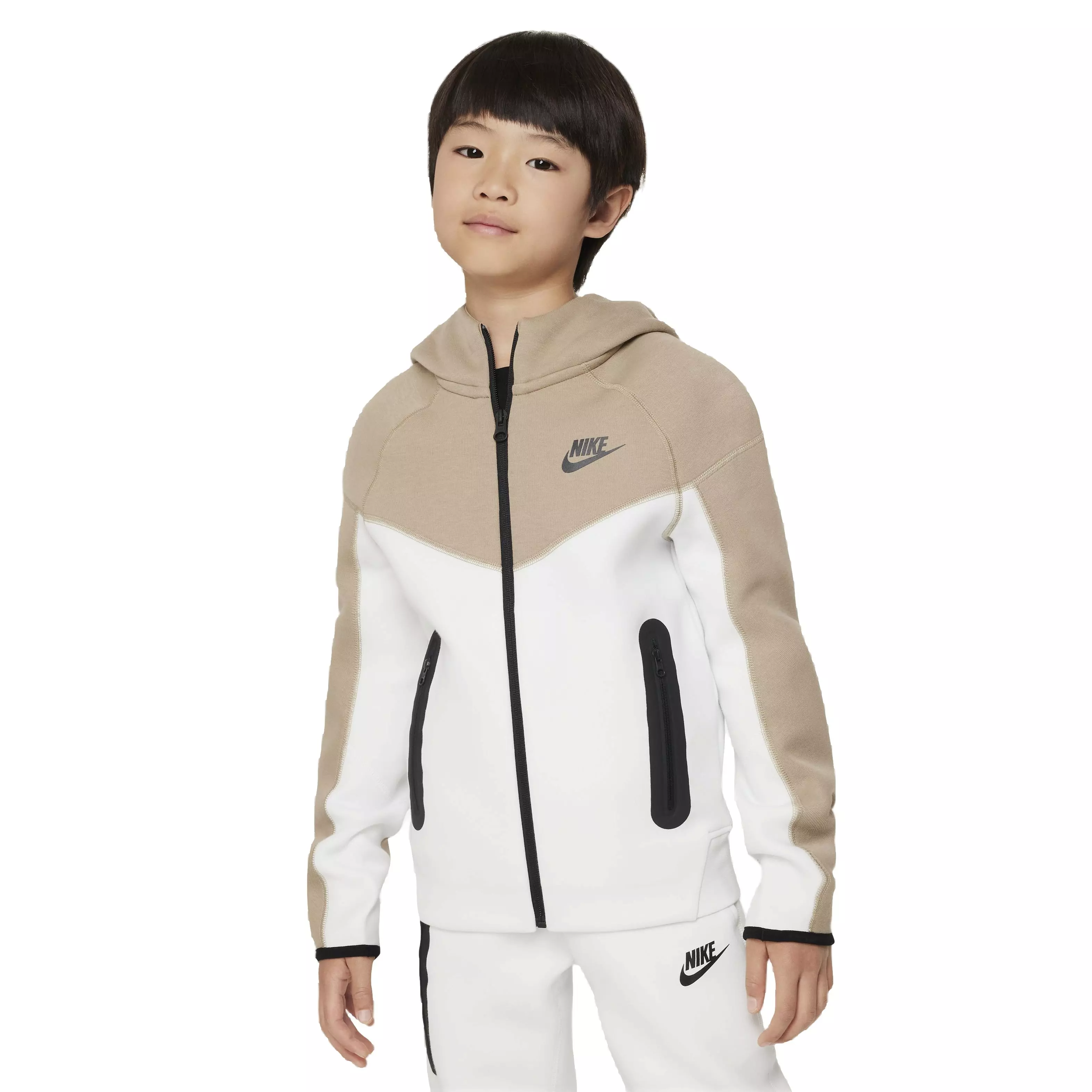 • Nike Big Boys' Sportswear Tech Fleece Full Zip Jacket - WHITE/KHAKI
