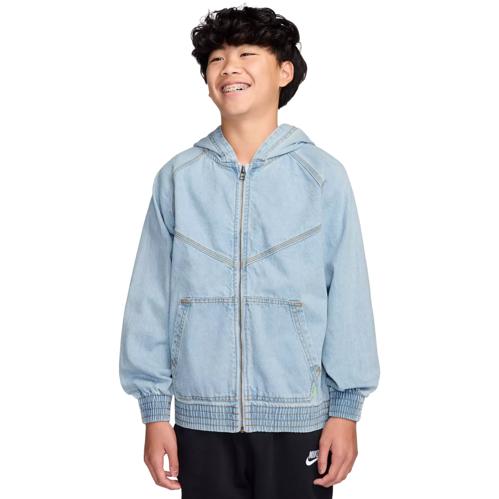 Nike Big Girls' Full-Zip Hooded Light Wash Denim Windrunner Jacket