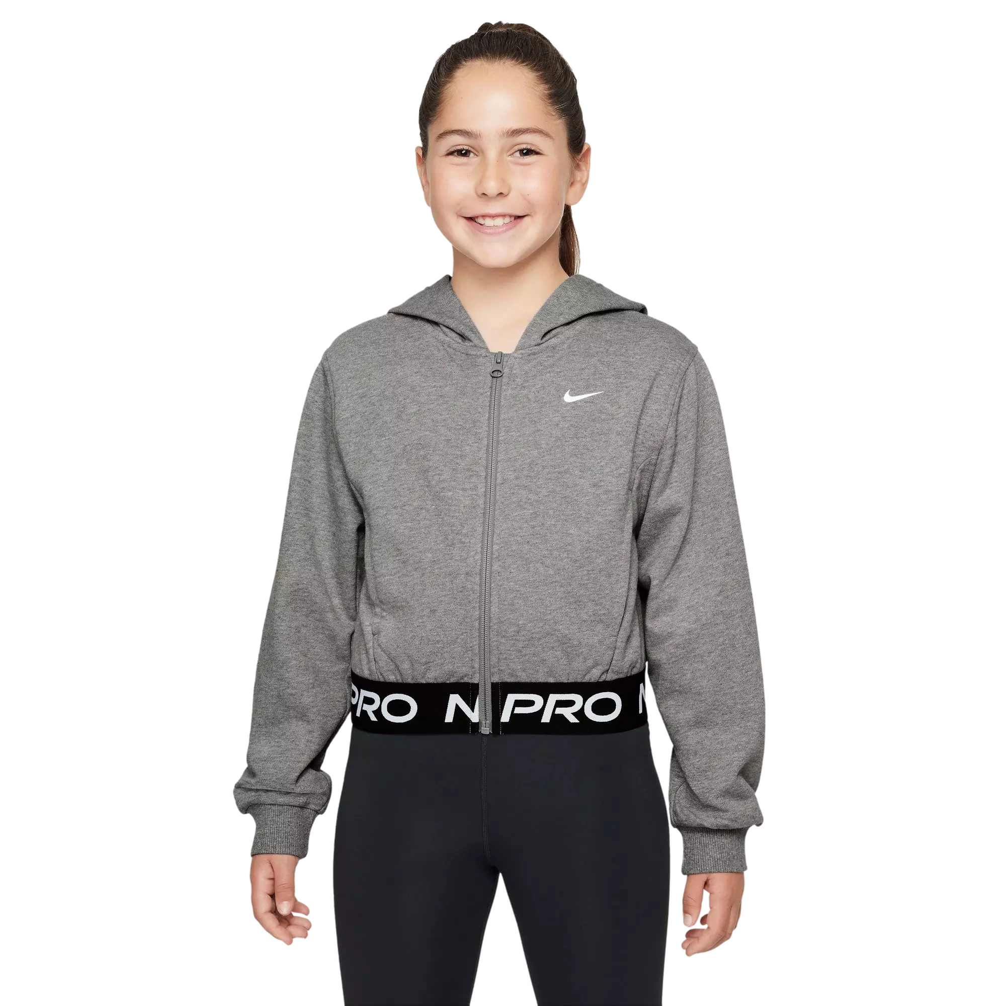 Nike Big Girls' Pro Dri-FIT Fleece Full-Zip Jacket-Grey
