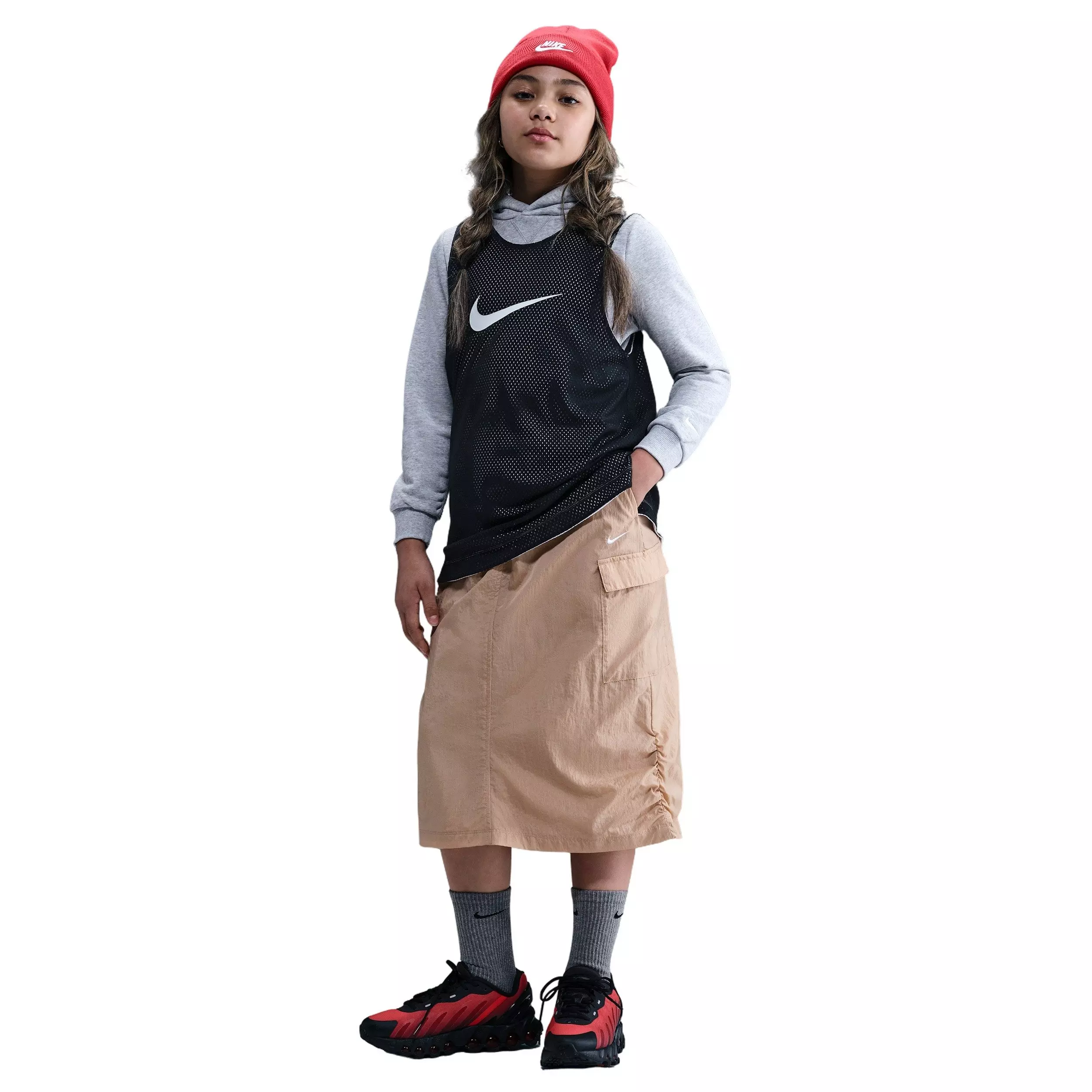 Make room in her lineup for the Nike Big Girls' Sportswear Cargo Skirt - Brown. Lightweight and water-repellent, this skirt uses smooth nylon with a soft lining for easy comfort from school to weekend adventures.