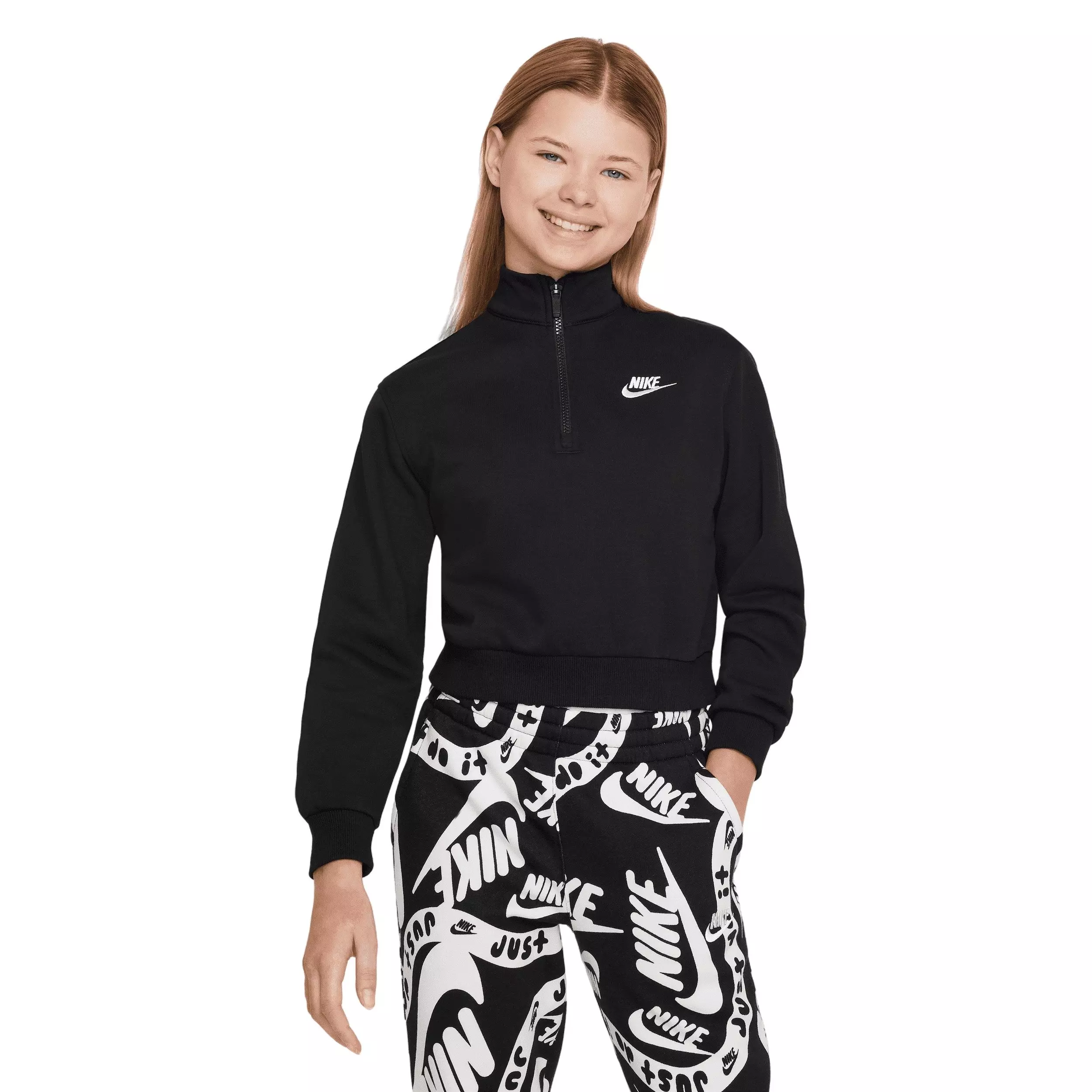 Nike Big Girls' Sportswear Club Fleece 1/2 Zip Long Sleeve Top - Black