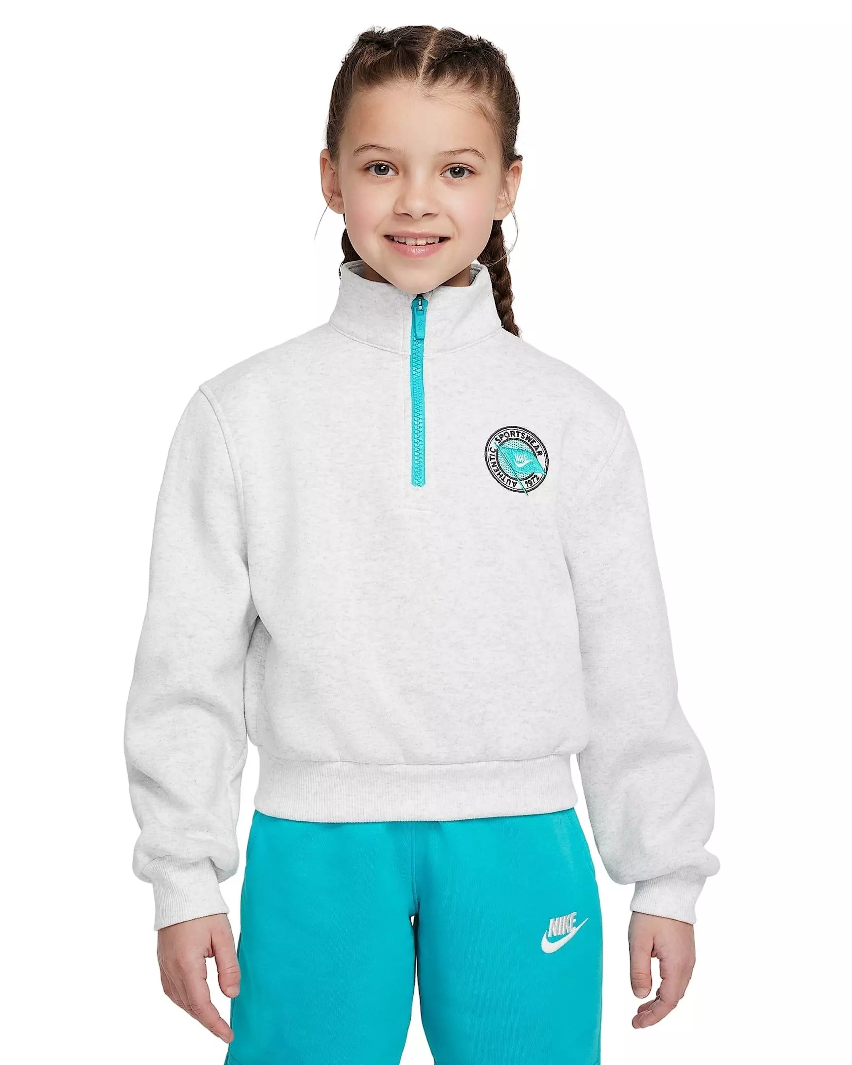 Nike Big Girls' Sportswear Club Fleece Long-Sleeve 1/2-Zip Top -Heather/Turquoise