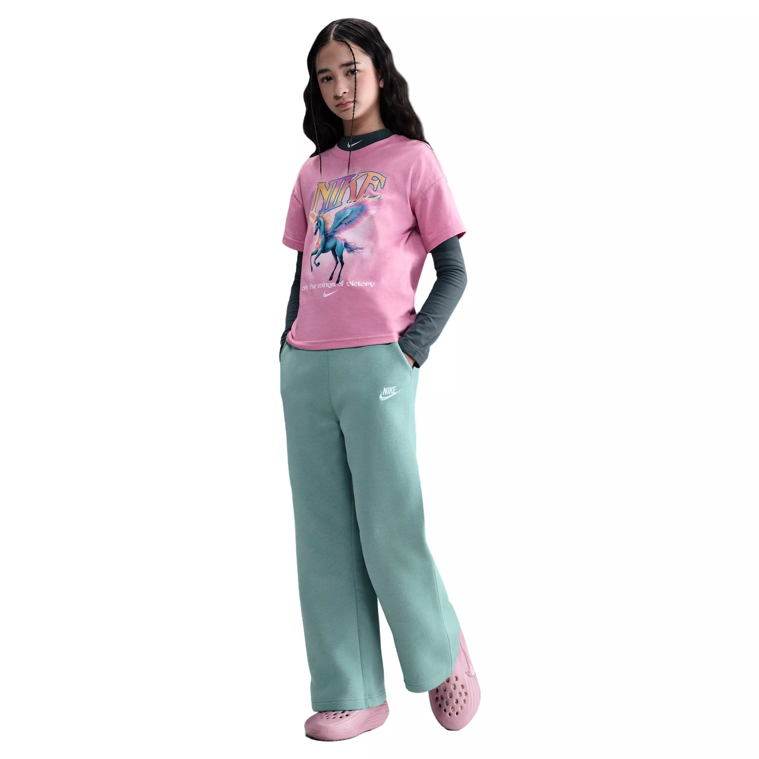 Always cool. Always comfortable. Our Nike Club Fleece favorites are closet staples you can wear again and again. Smooth on the outside and brushed soft on the inside, these lightweight Nike Big Girls' Sportswear Club Fleece Wide-Leg Pants - Green are an easy way to make chilly days feel a little cozier.Features