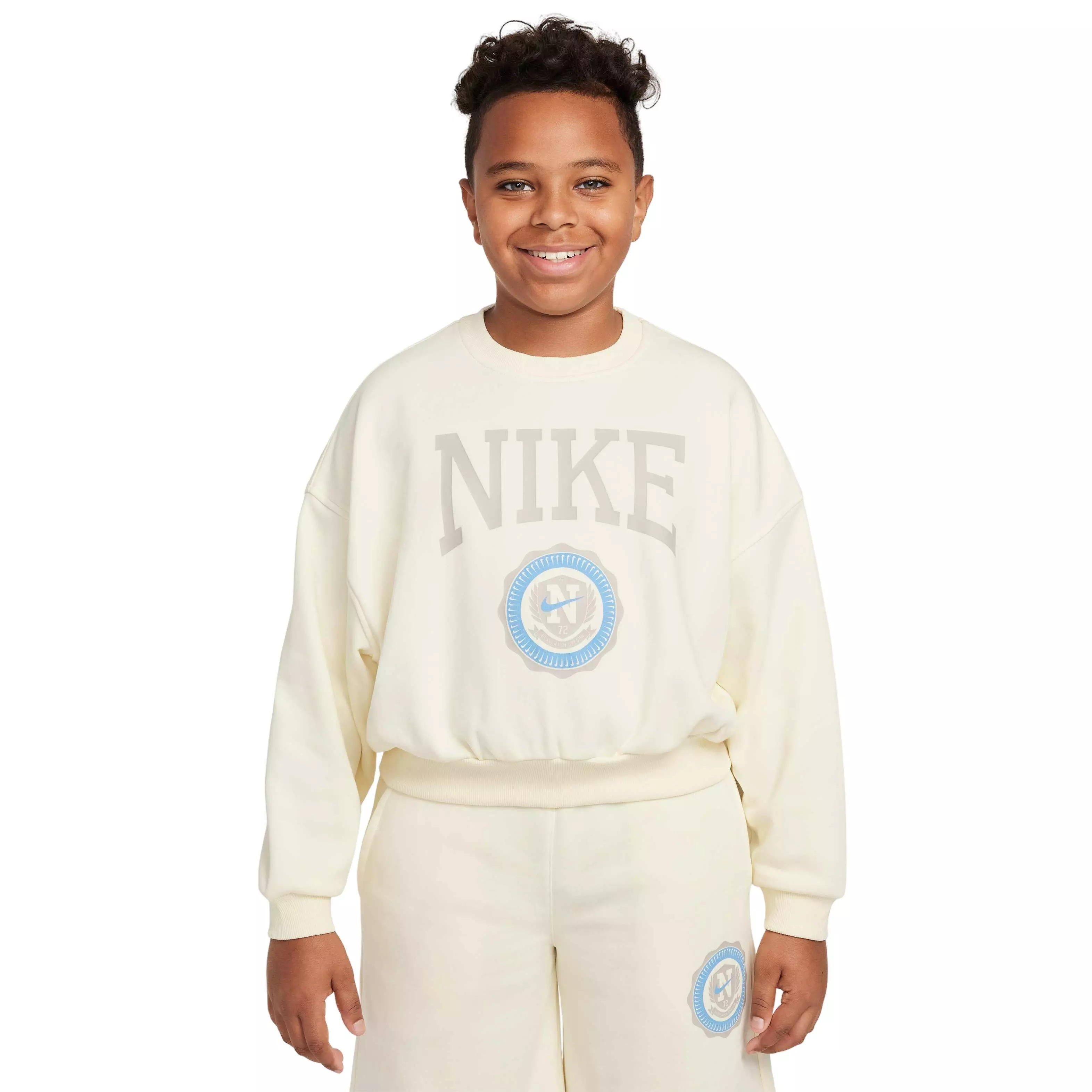 Meet our favorite comfy essential. Smooth on the outside with unbrushed loops on the inside, this oversized Nike Big Girls' Sportswear Club French Terry Crew-Neck Sweatshirt is breathable enough to wear all year long. A baggy fit through the body pairs with a subtly cropped hem to give you room to move without feeling too big.Features